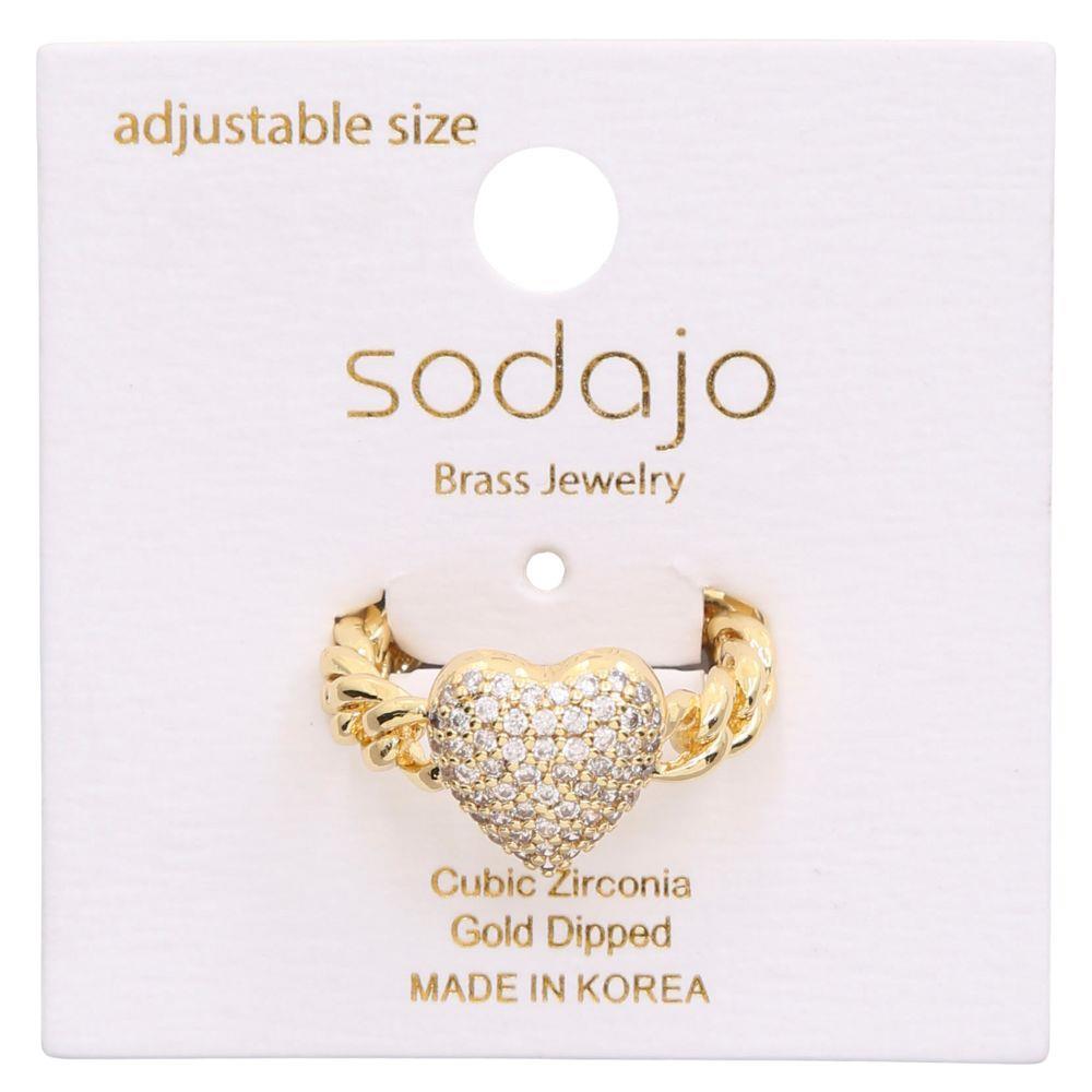 SODAJO HEART SHAPE CZ GOLD DIPPED ADJUSTABLE RING