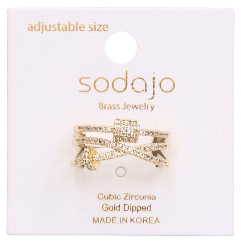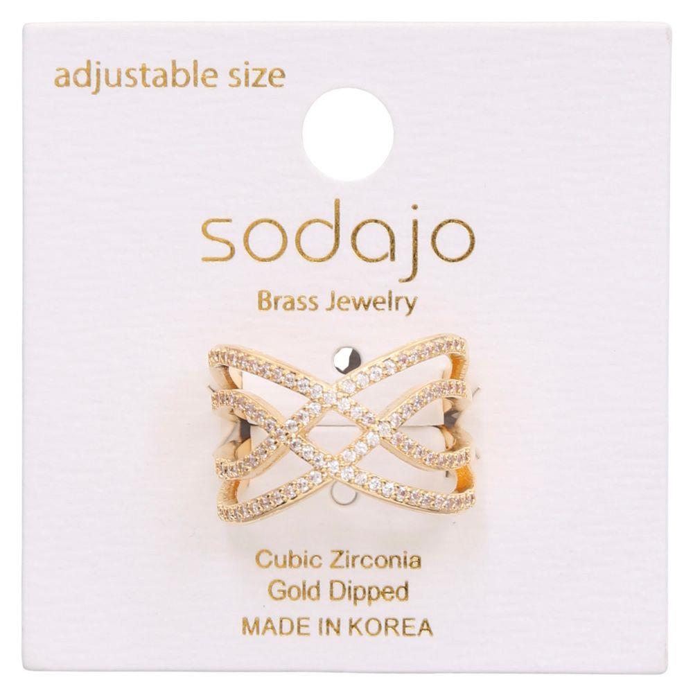 SODAJO CRISS CROSS CZ GOLD DIPPED ADJUSTABLE RING