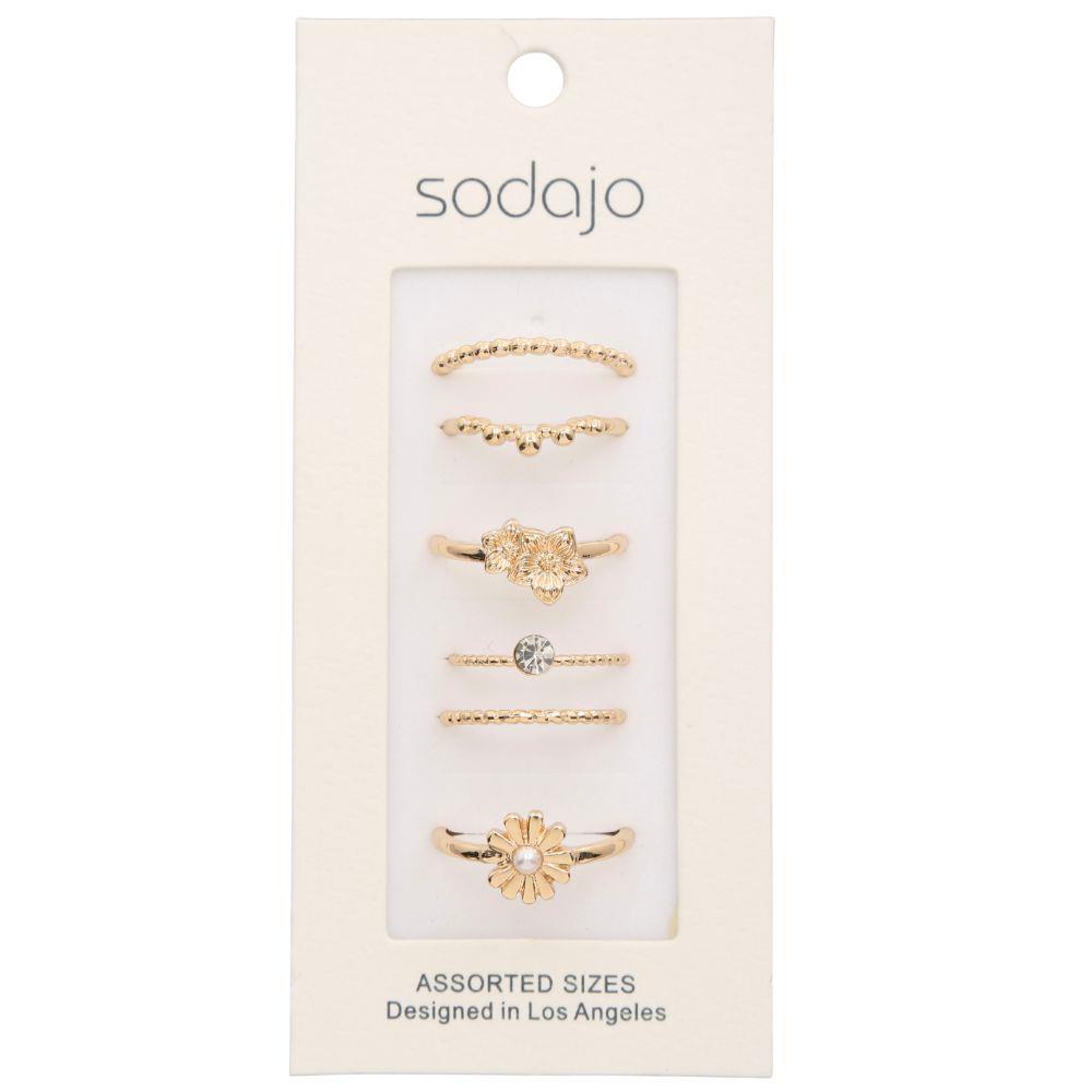 SODAJO FLOWER PEARL BEAD RHINESTONE METAL ASSORTED RING SET