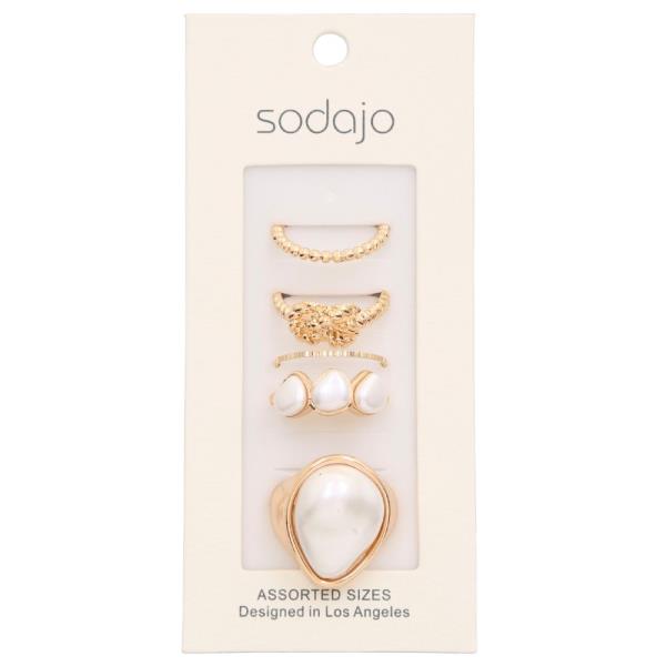 SODAJO PEARL BEAD METAL ASSORTED RING SET