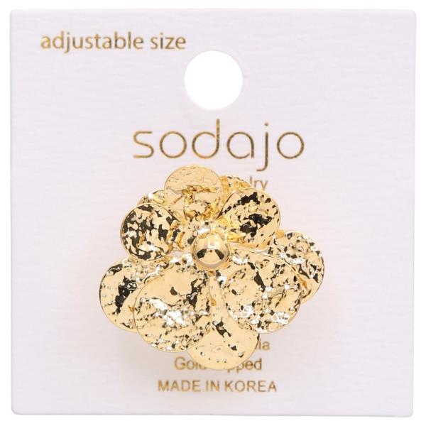 SODAJO FLOWER LEAF CZ GOLD DIPPED ADJUSTABLE RING