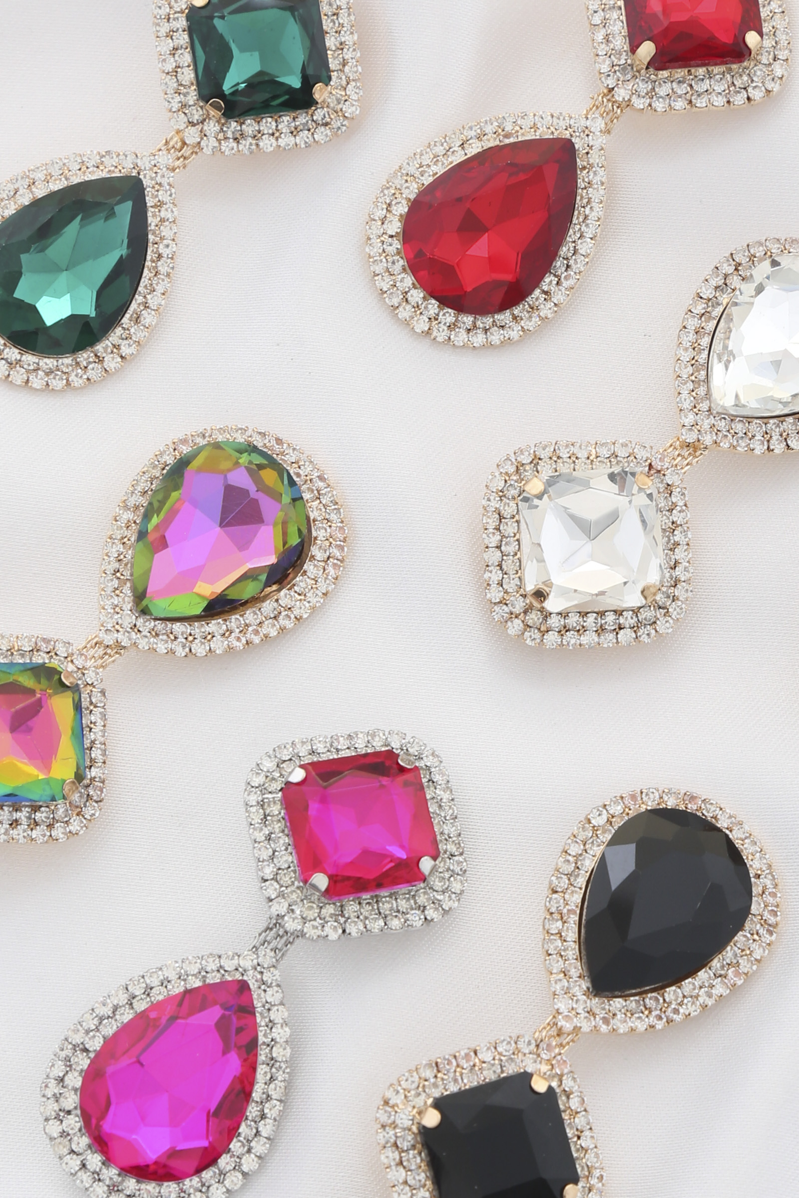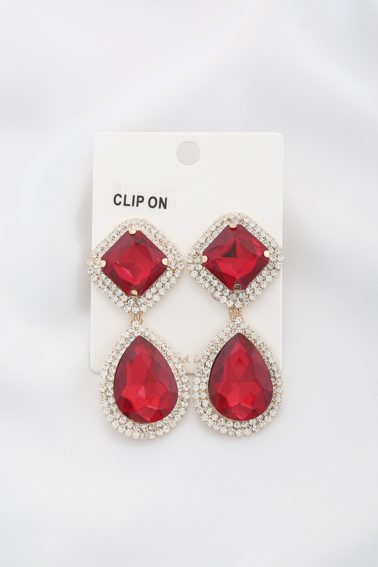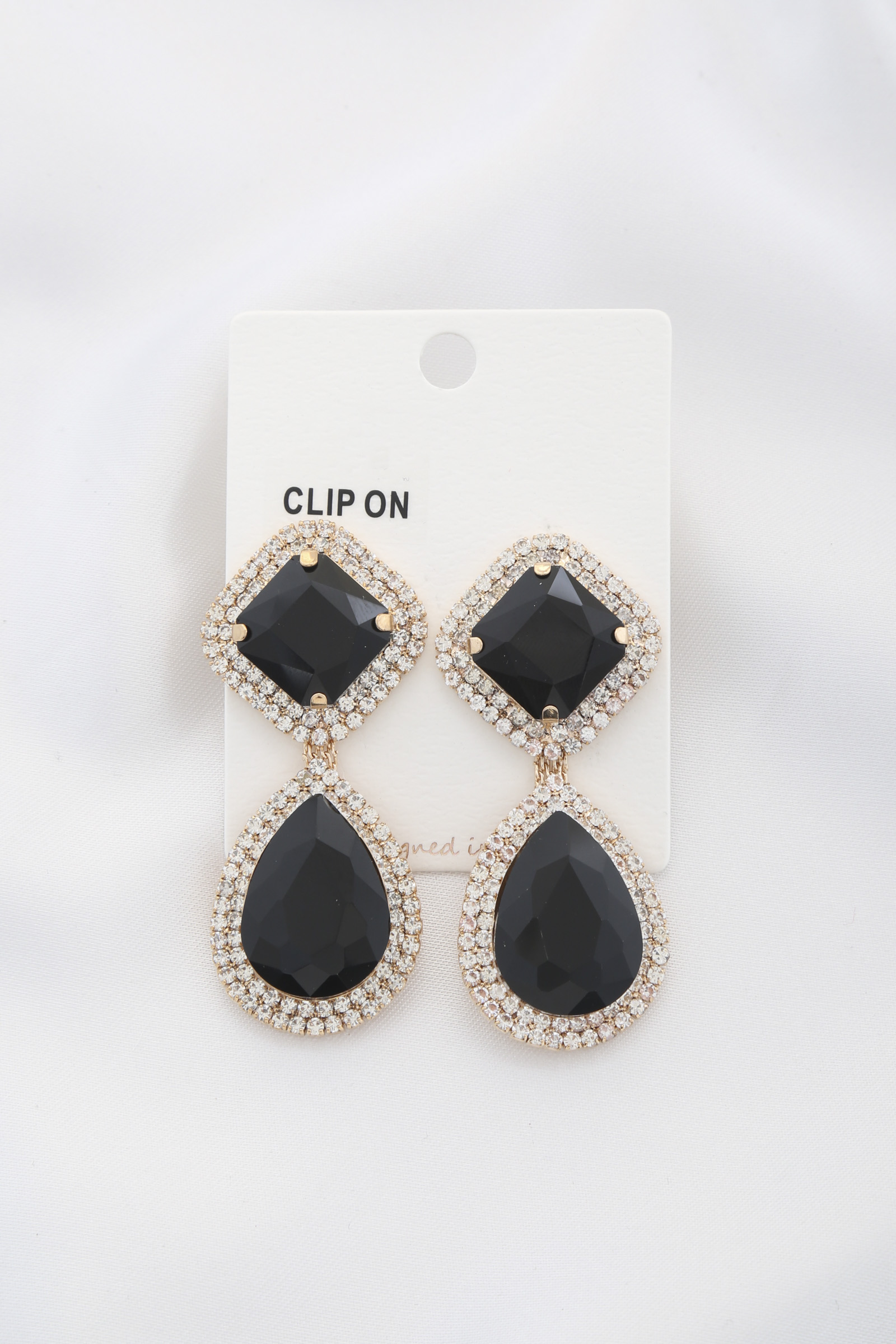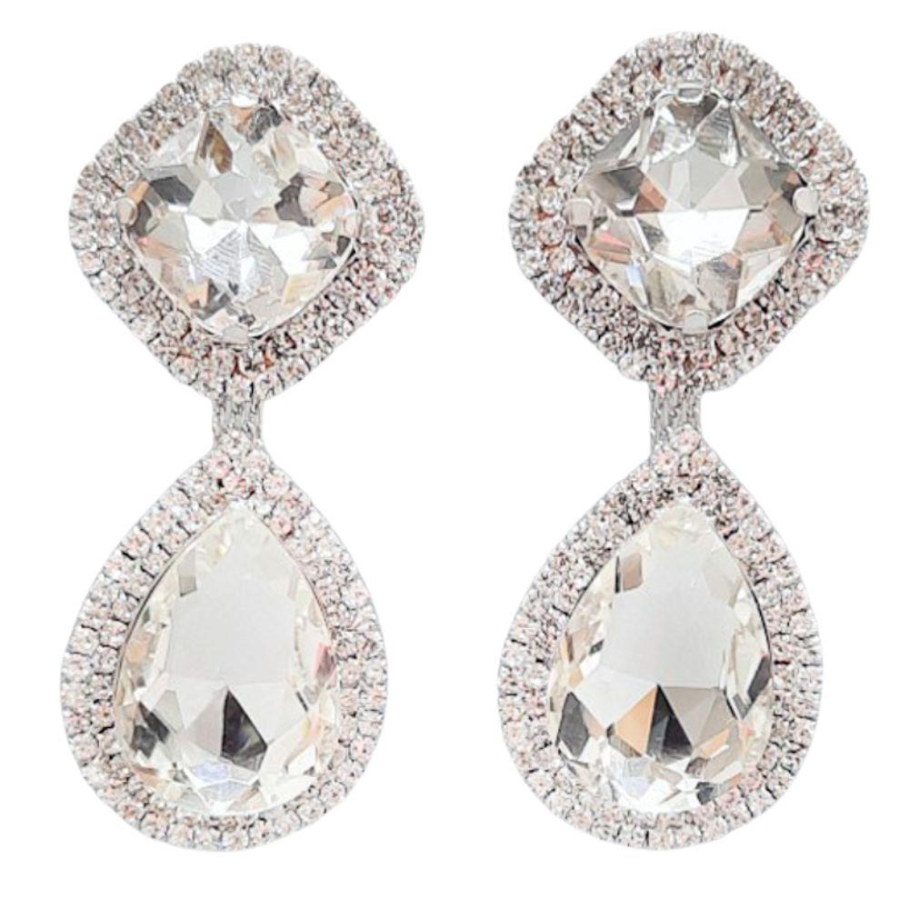RHOMBUS TEADROP RHINESTONE CLIP EARRING