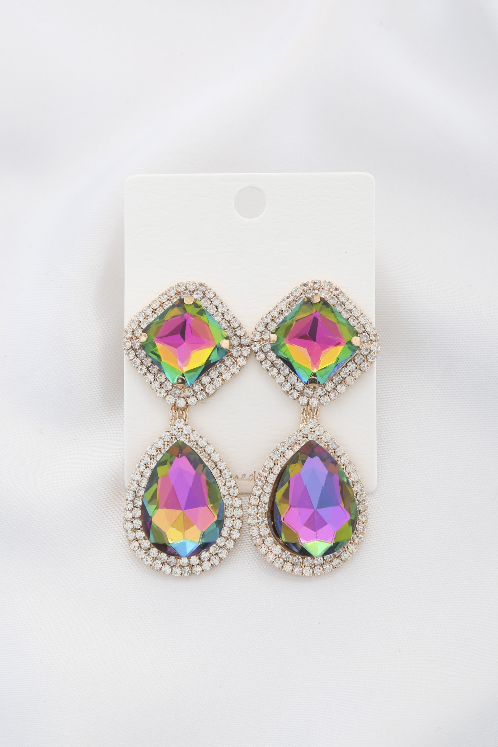 TWO TONE SQUARE CRYSTAL EARRING