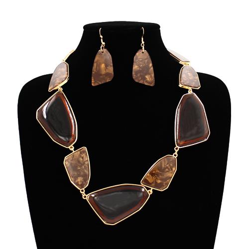 RESIN STONE LINK STATEMENT NECKLACE EARRING SET