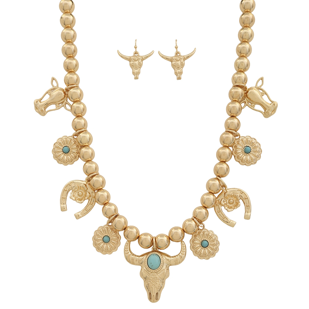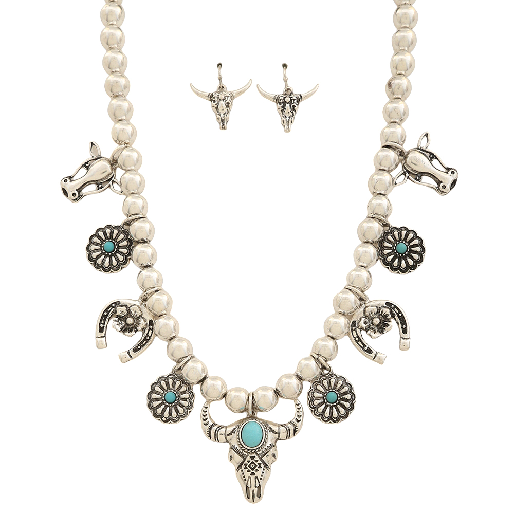 WESTERN THEME BEAD NECKLACE EARRING SET