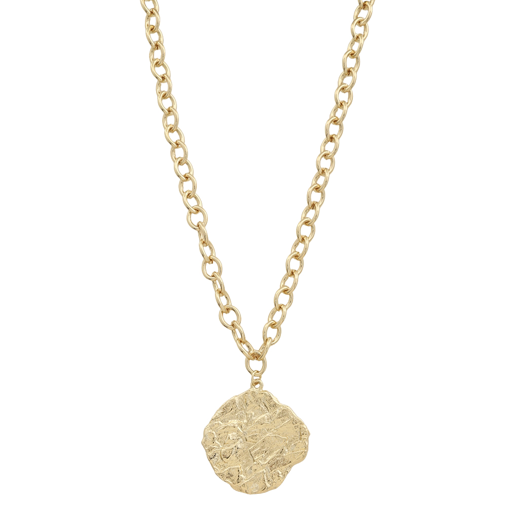 HAMMERED PENDANT METAL CHAIN LINK NECKLACE