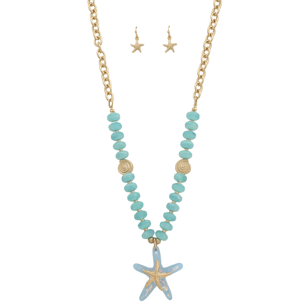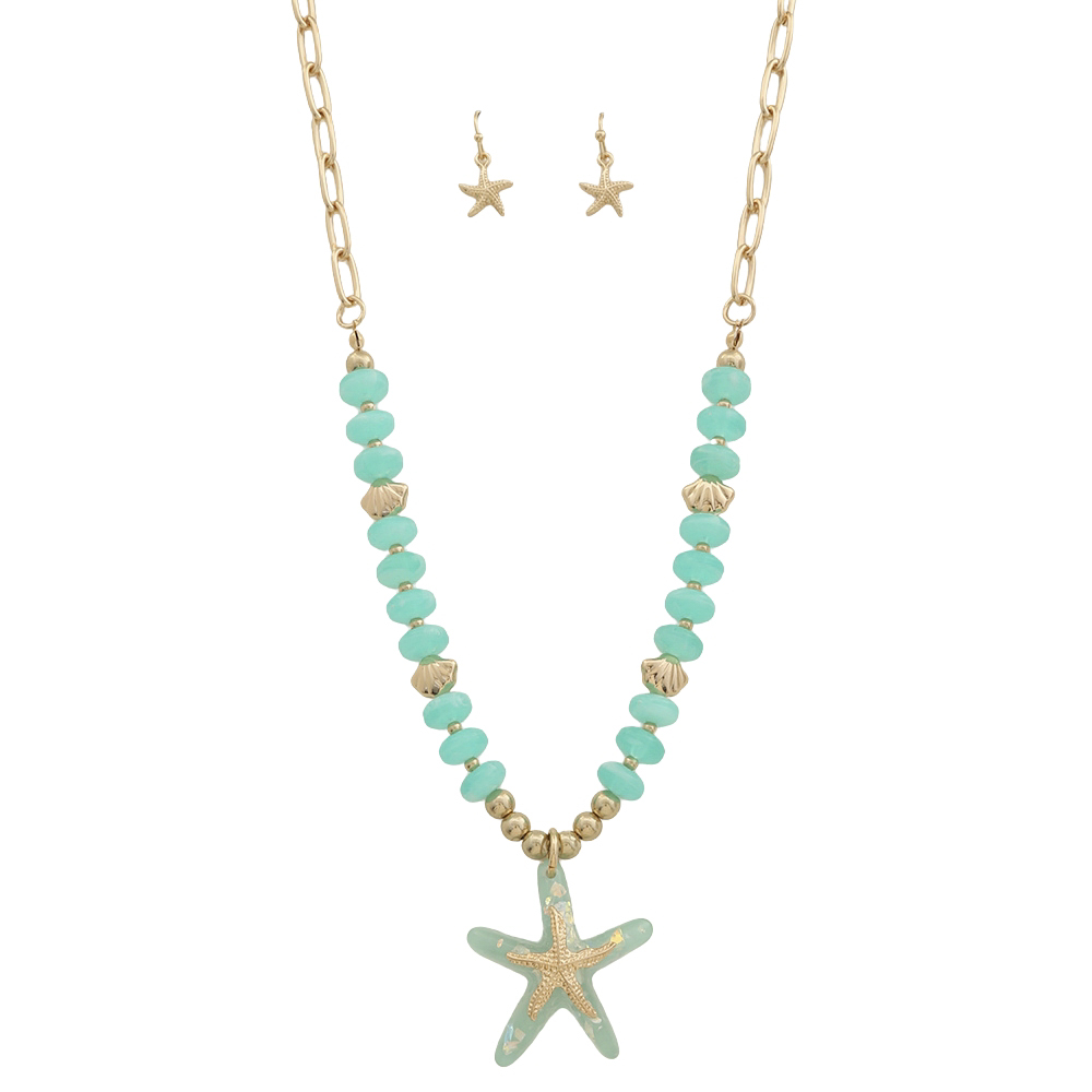 STARFISH PENDANT BEAD CHAIN LINK NECKLACE EARRING SET