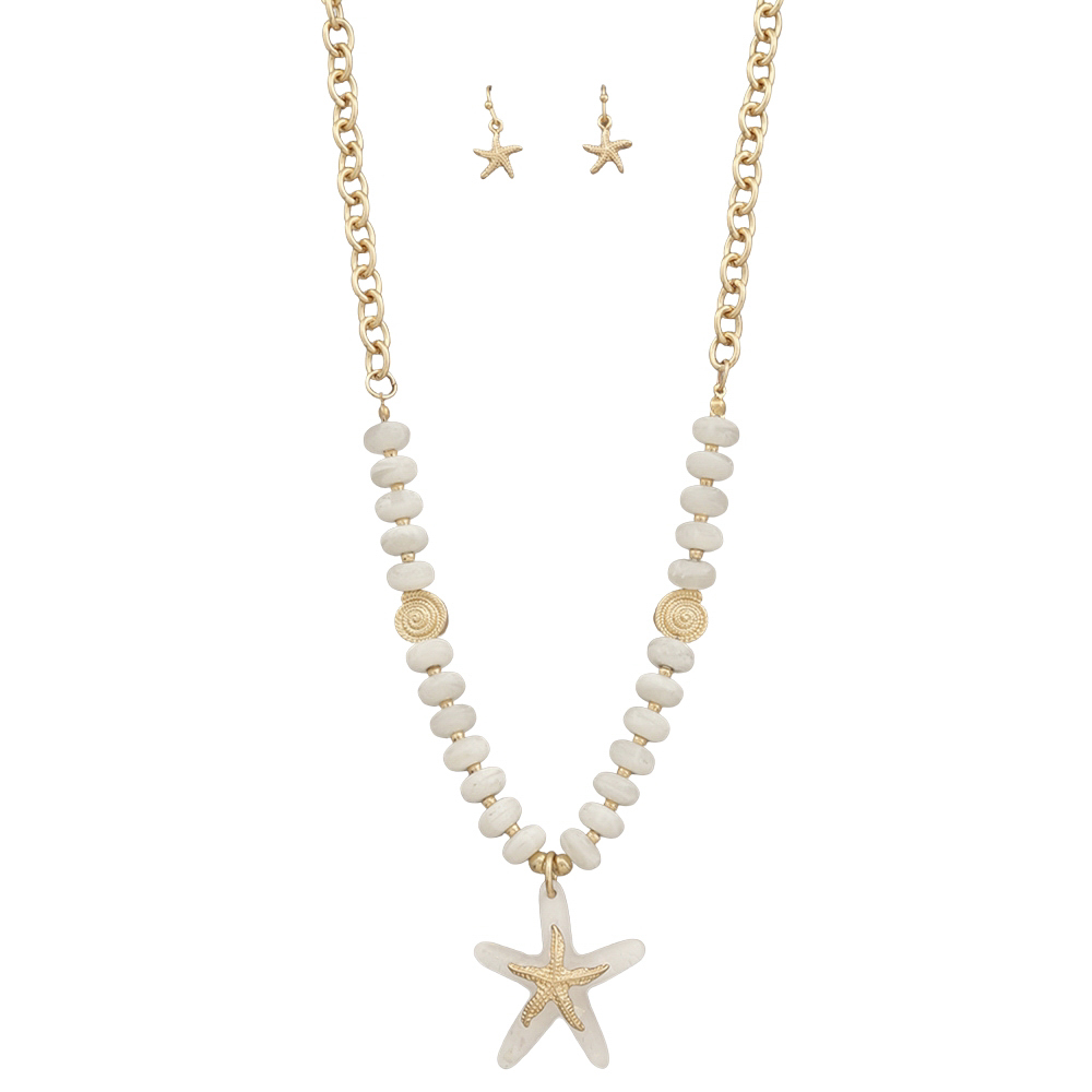 STARFISH PENDANT SHELL BEAD CHAIN LINK NECKLACE EARRING SET