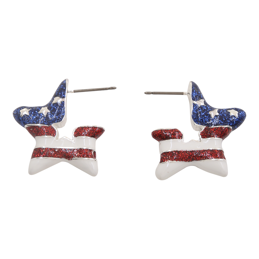 STAR SHAPED ENAMEL W/ AMERICAN FLAG PATTERN HYPOALLERGENIC EARRING