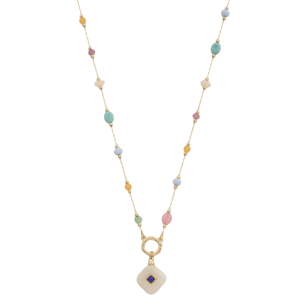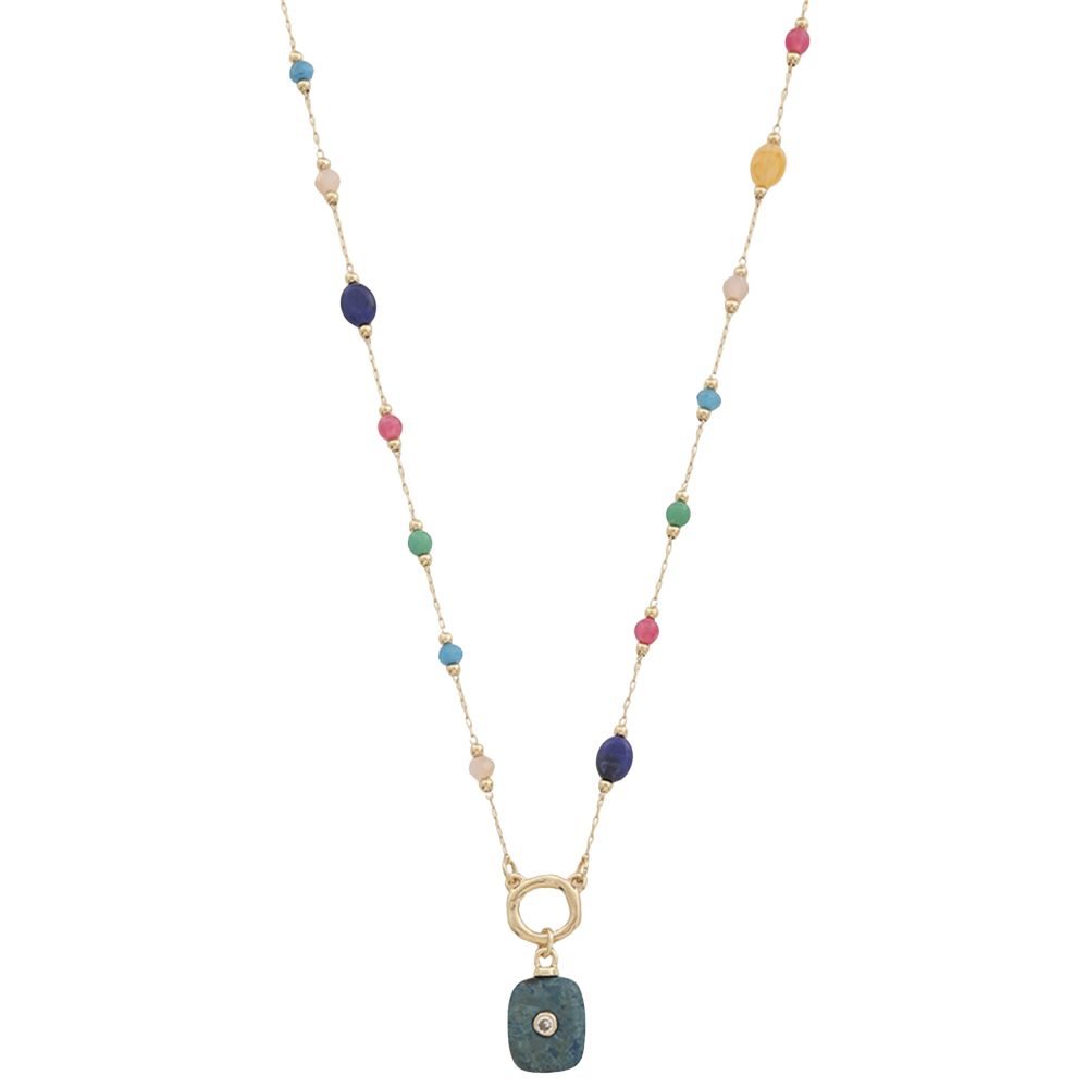 MIX COLOR STONE BEAD SHAPE PENDANT NECKLACE