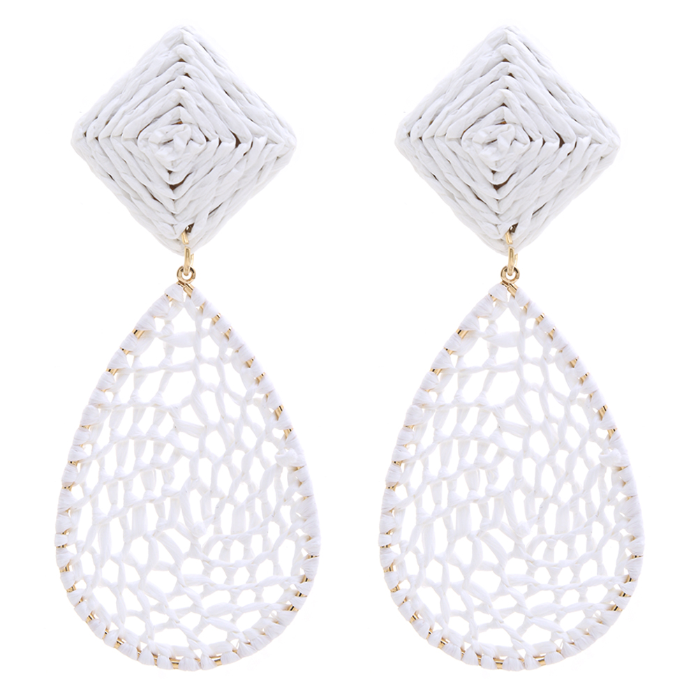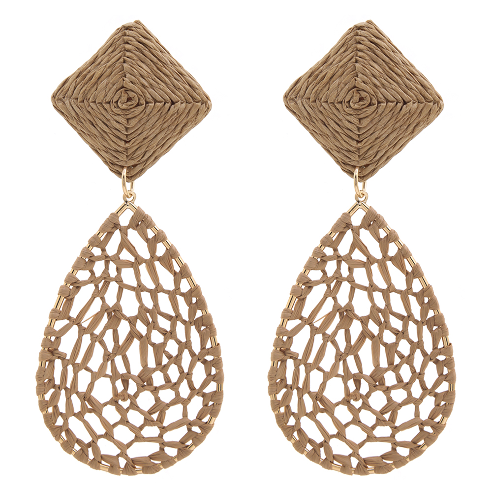 MESH TEARDROP SHAPED RAFFIA DANGLE EARRING