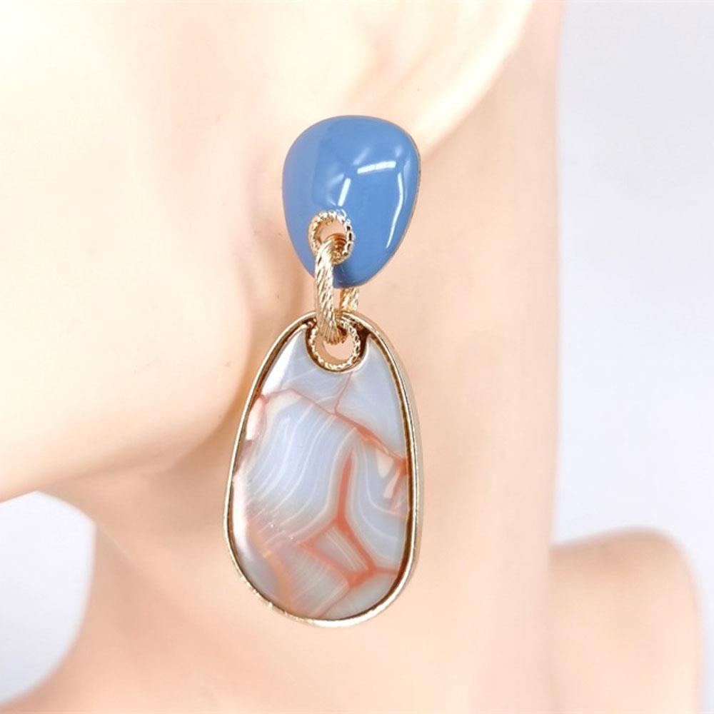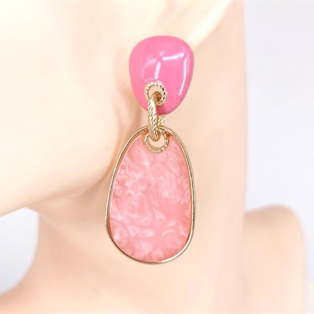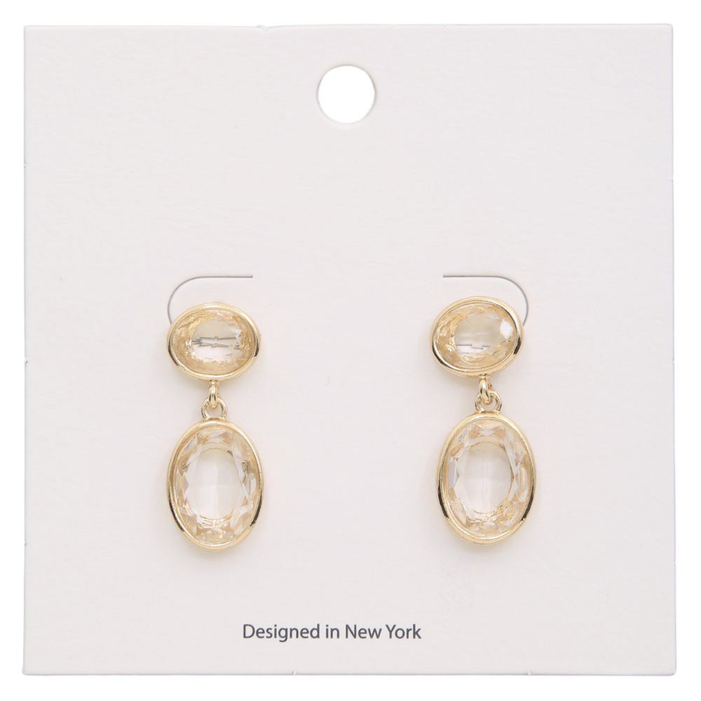 OVAL ROUND CRYSTAL LINK DANGLE EARRING