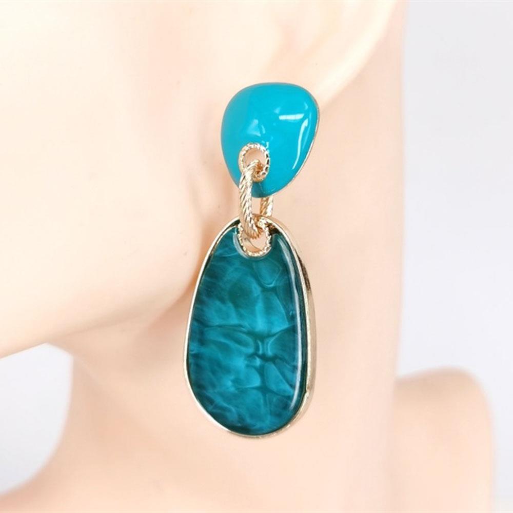 TURQUOISE BEAD ROUND LINK DANGLE EARRING