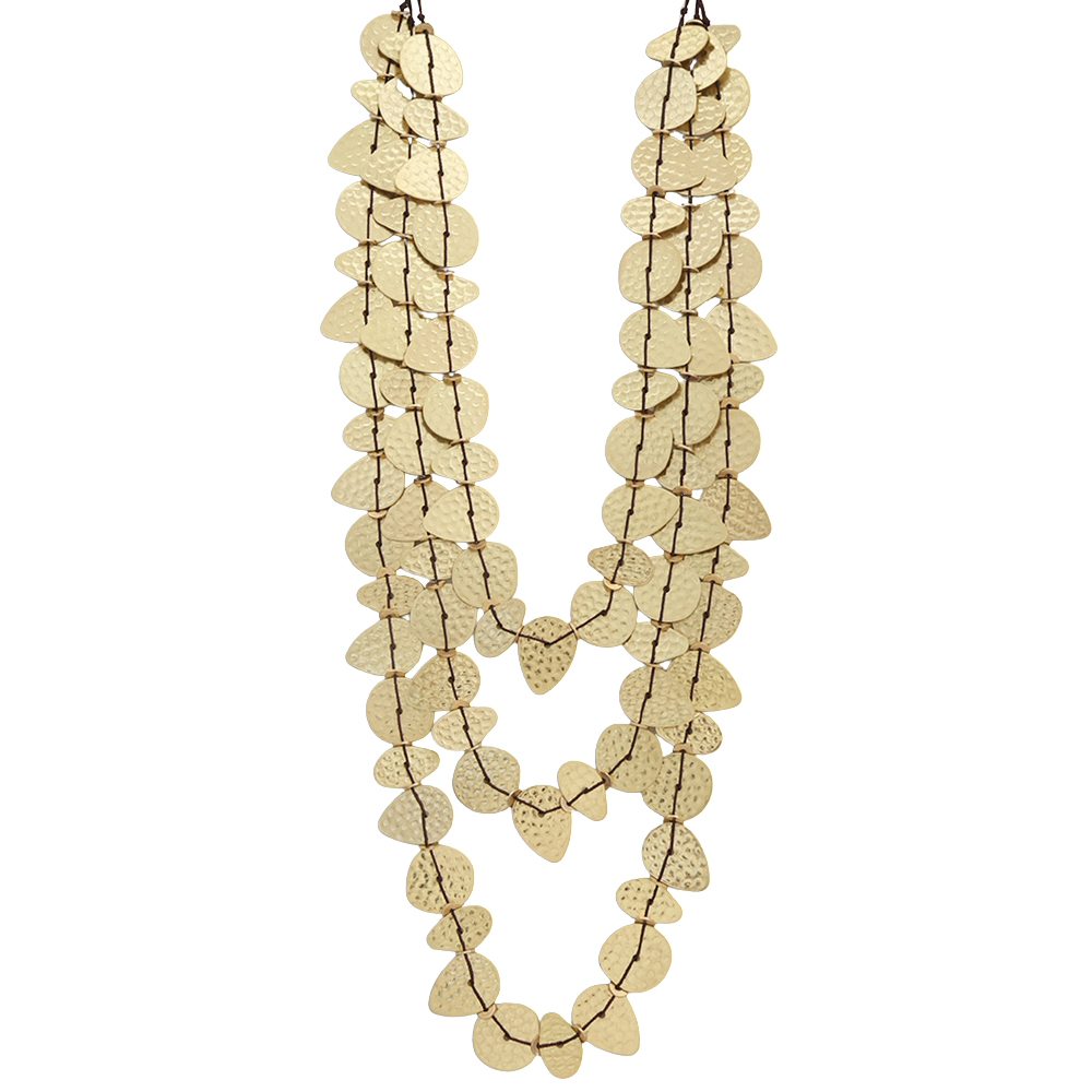 MULTI LAYER BEAD TEXTURED METAL DESIGN NECKLACE