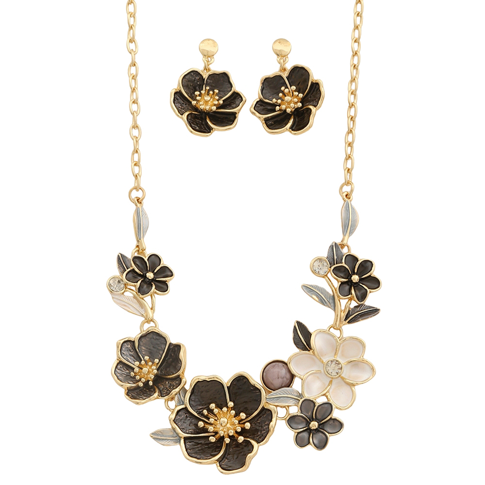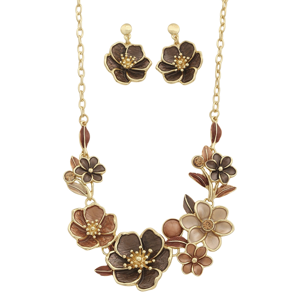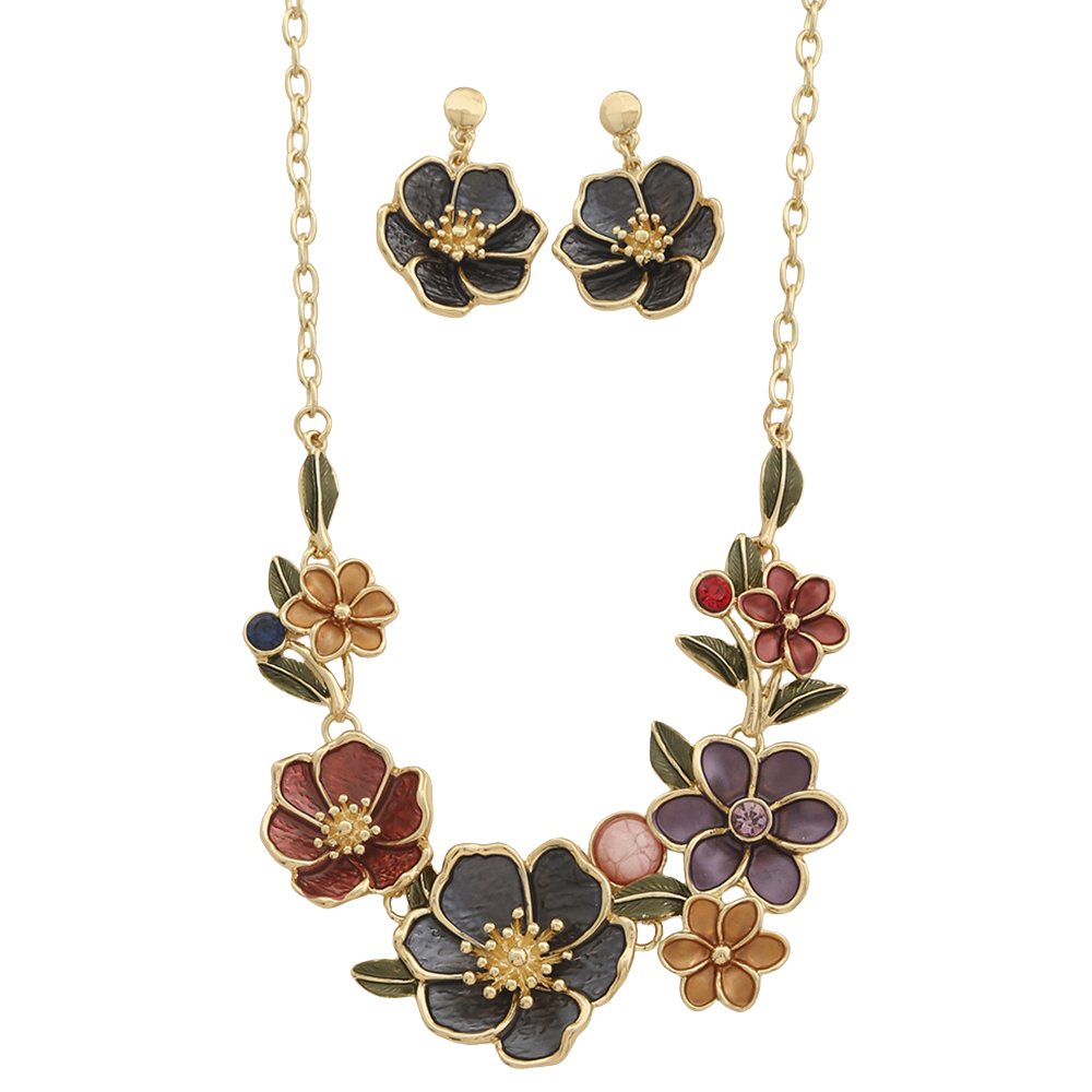 FLOWER BLOSSOM CHAIN NECKLACE EARRING SET