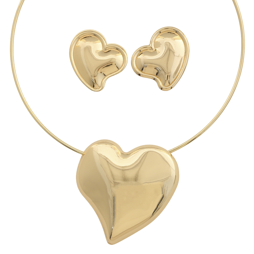 HEART PENDANT CHOKER NECKLACE EARRING SET