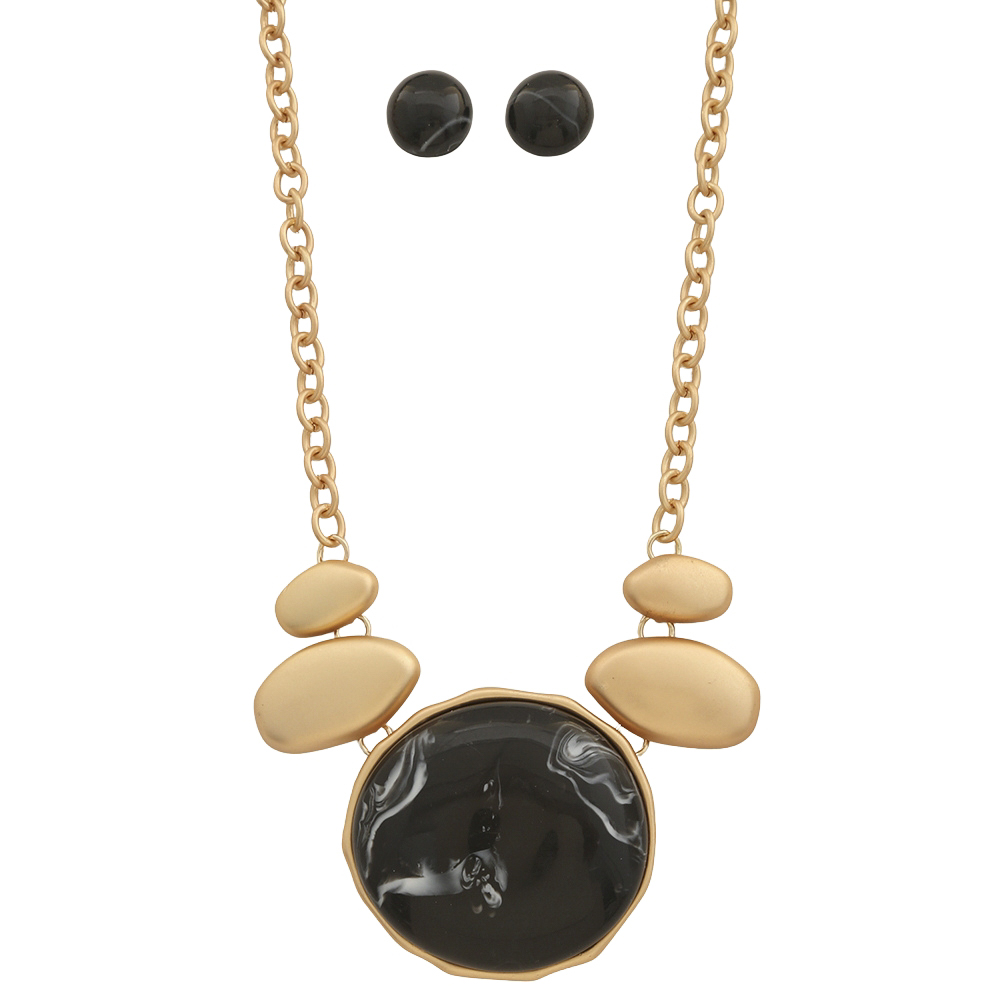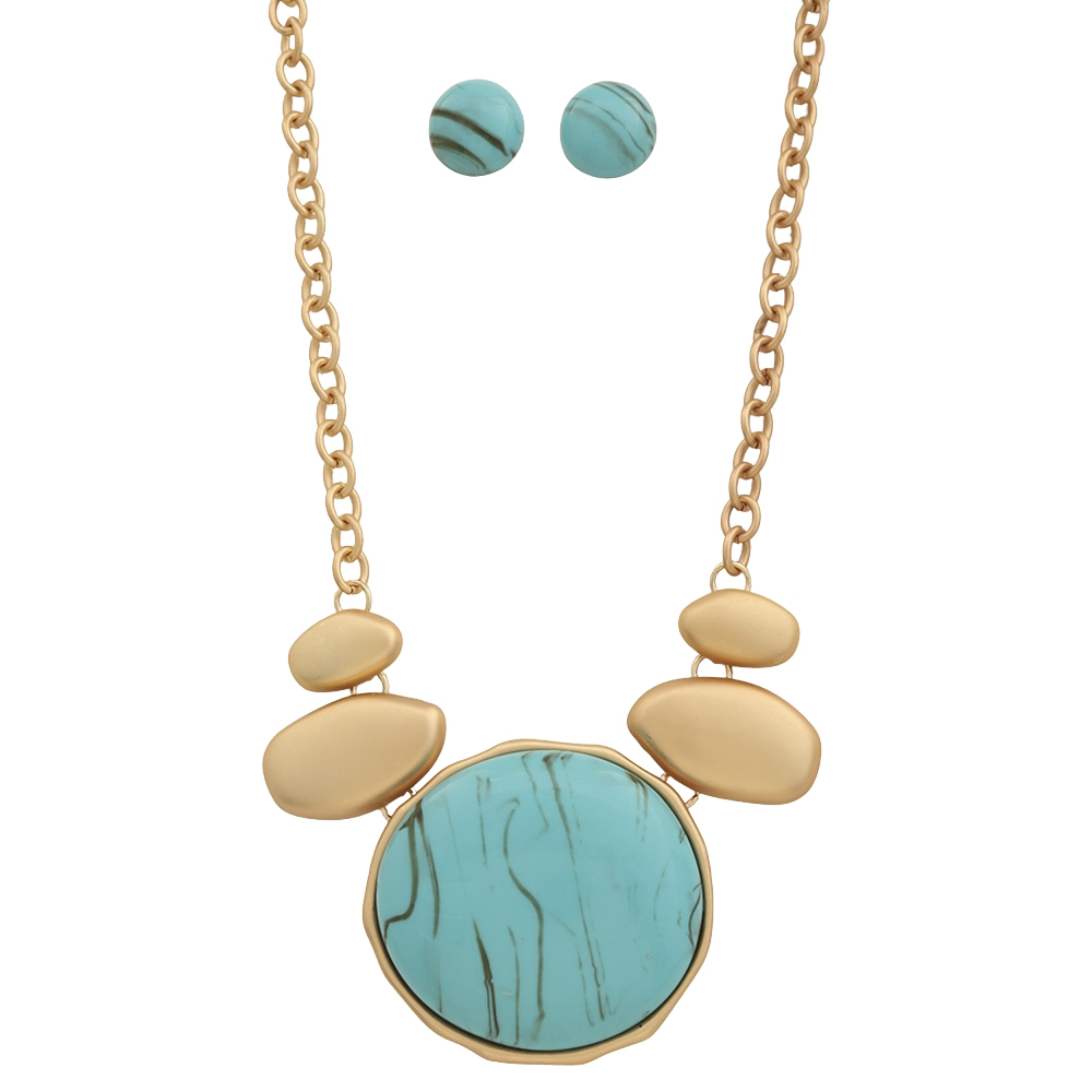 ROUND STONE CHAIN NECKLACE EARRING SET