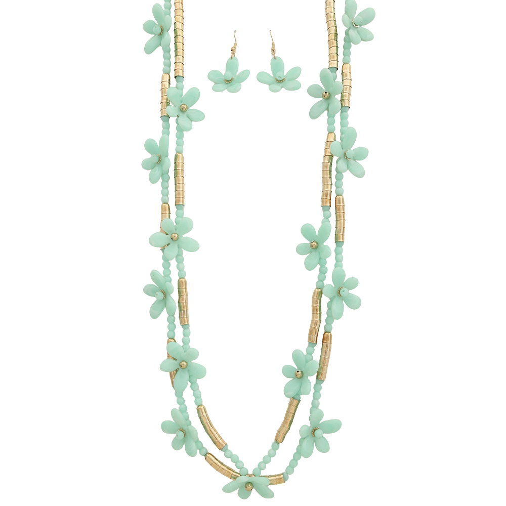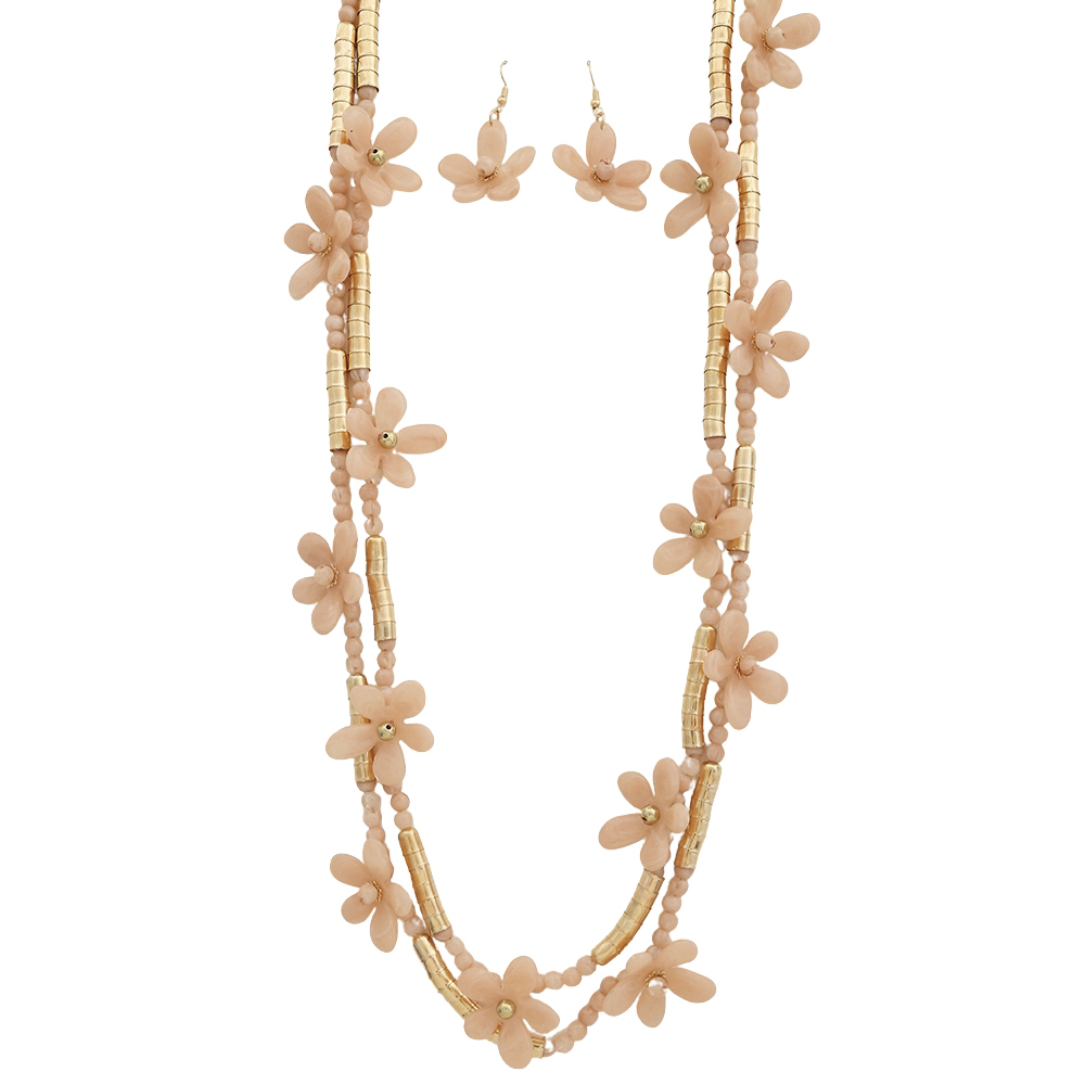 FLOWER LAYER BEAD NECKLACE EARRING SET