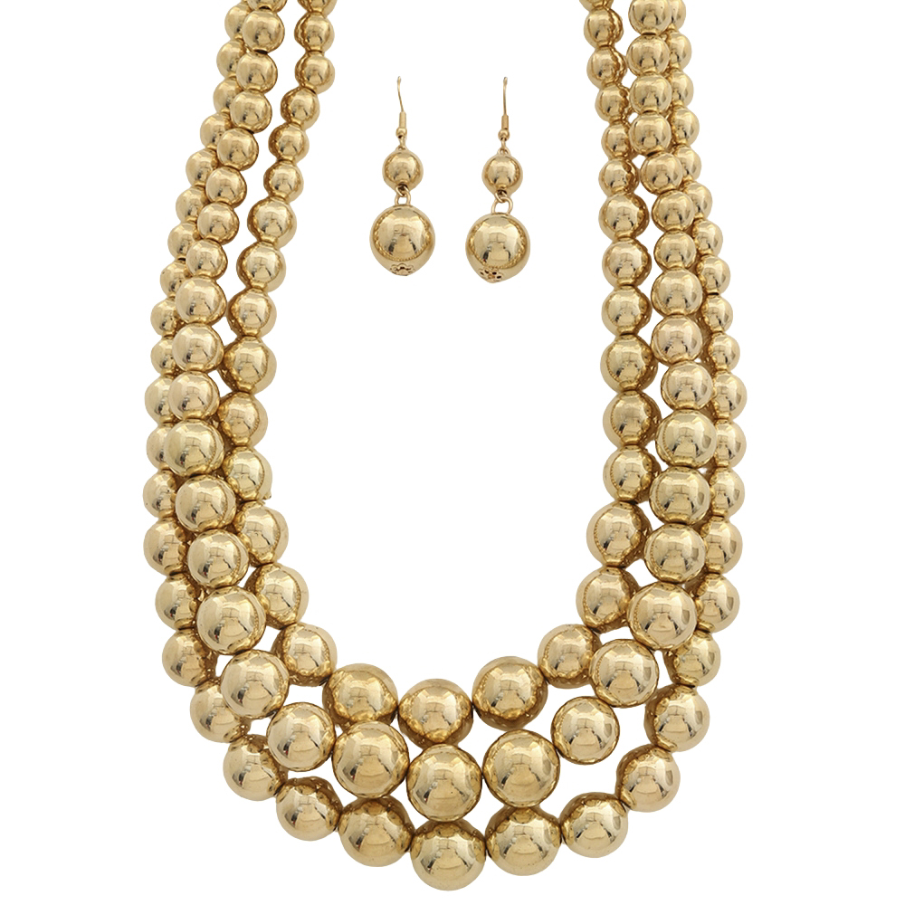 BINA308 GD BRASS- 3 LYD BALL PDT SNAKE CHAIN NECKLACE