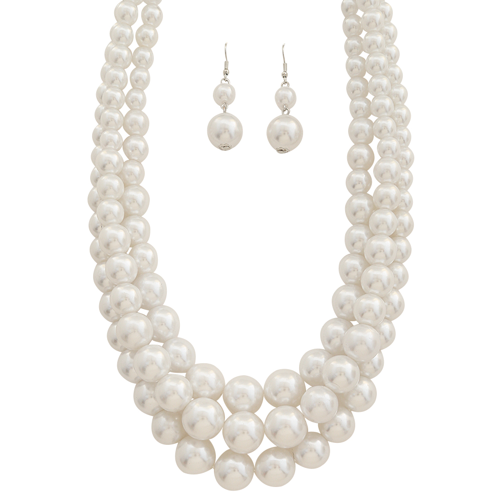 3PRS TEARDROP PEARL HOOP EARRING SET