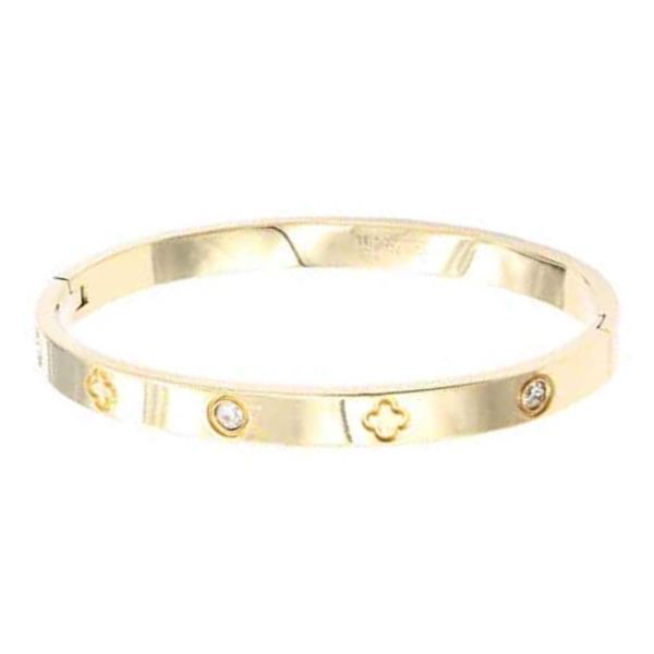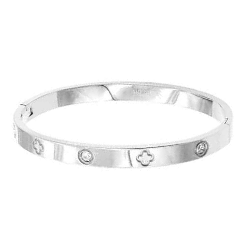 SECRET BOX  STAINLESS STEEL CLOVER CUIC ZIRCONIA OPEN BANGLE