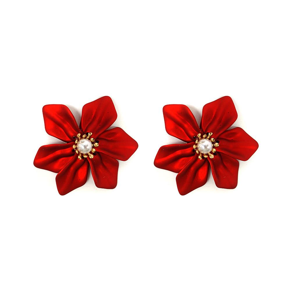 PEARL BEAD PETAL METAL DANGLE EARRING
