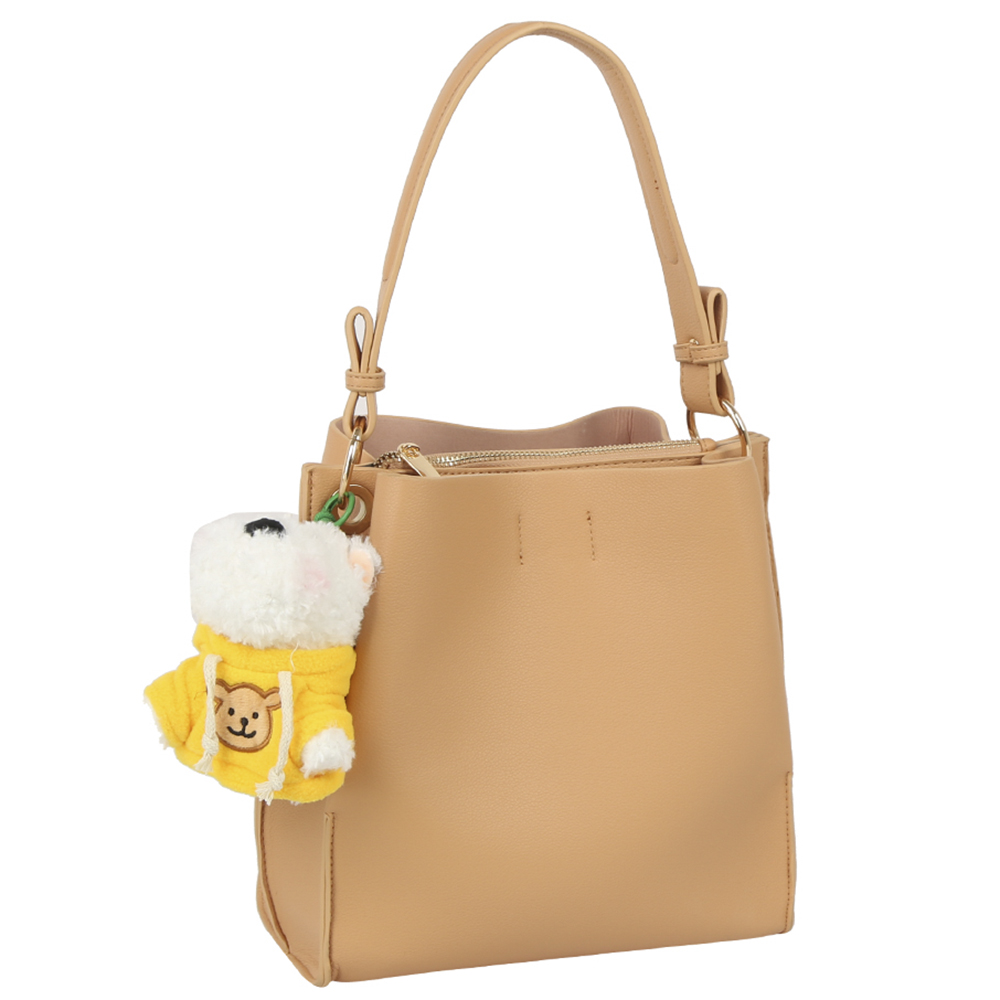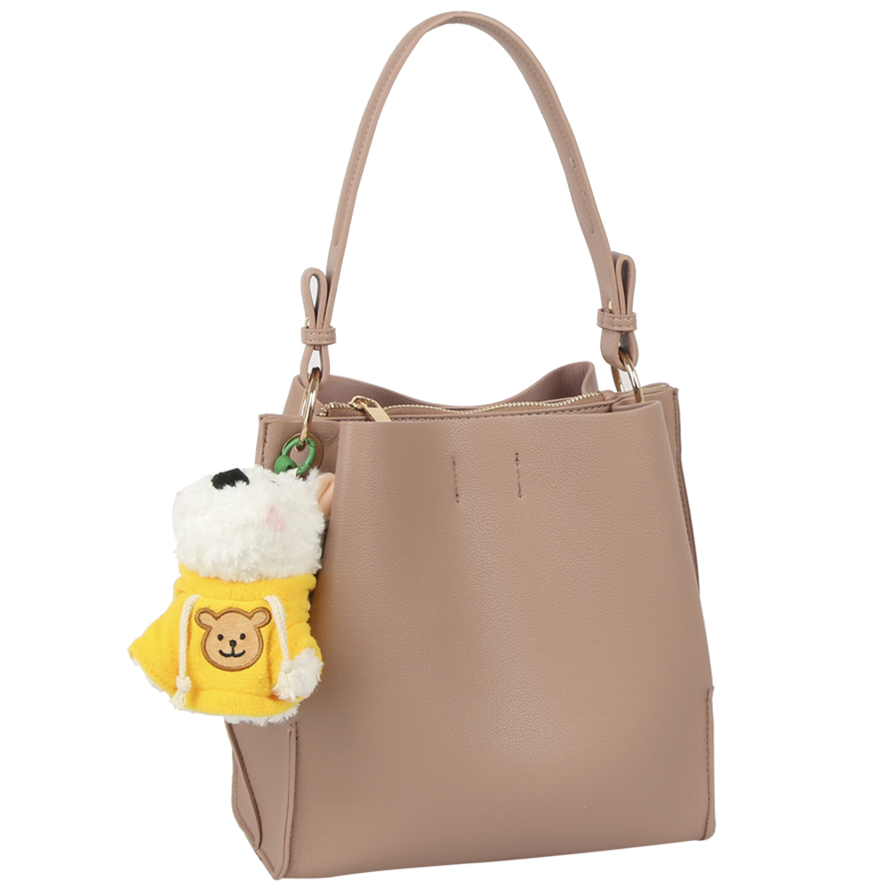 PLAIN HANDLE BAG W DOLL KEYCHAIN