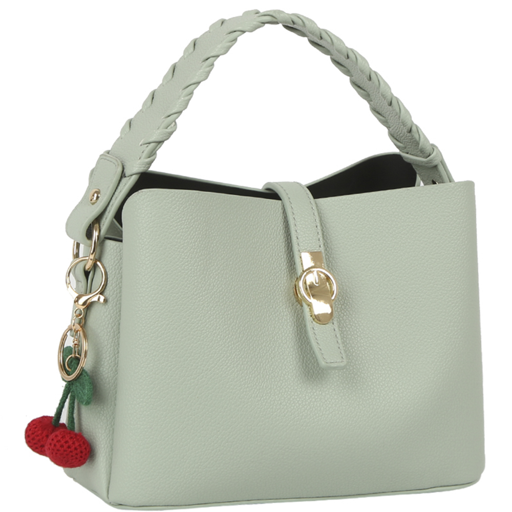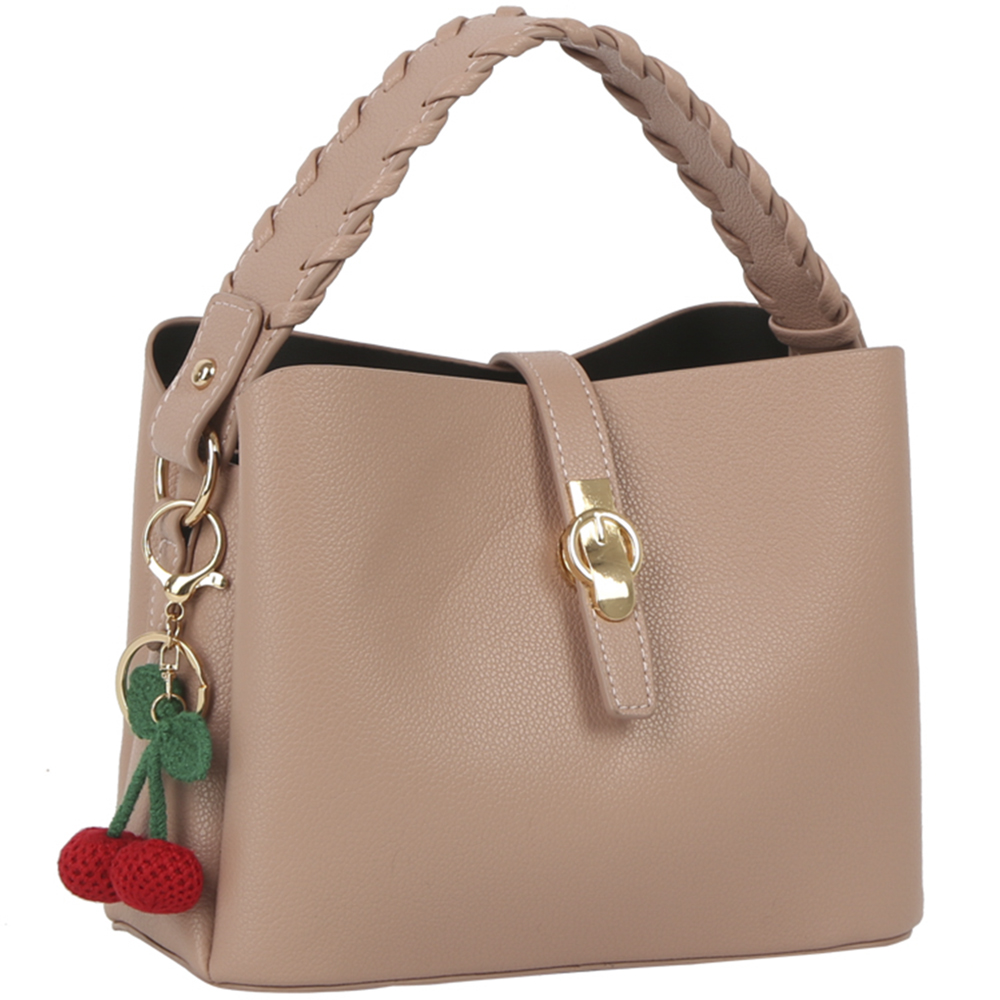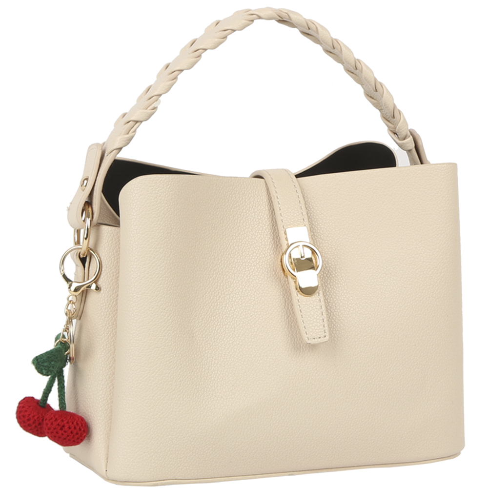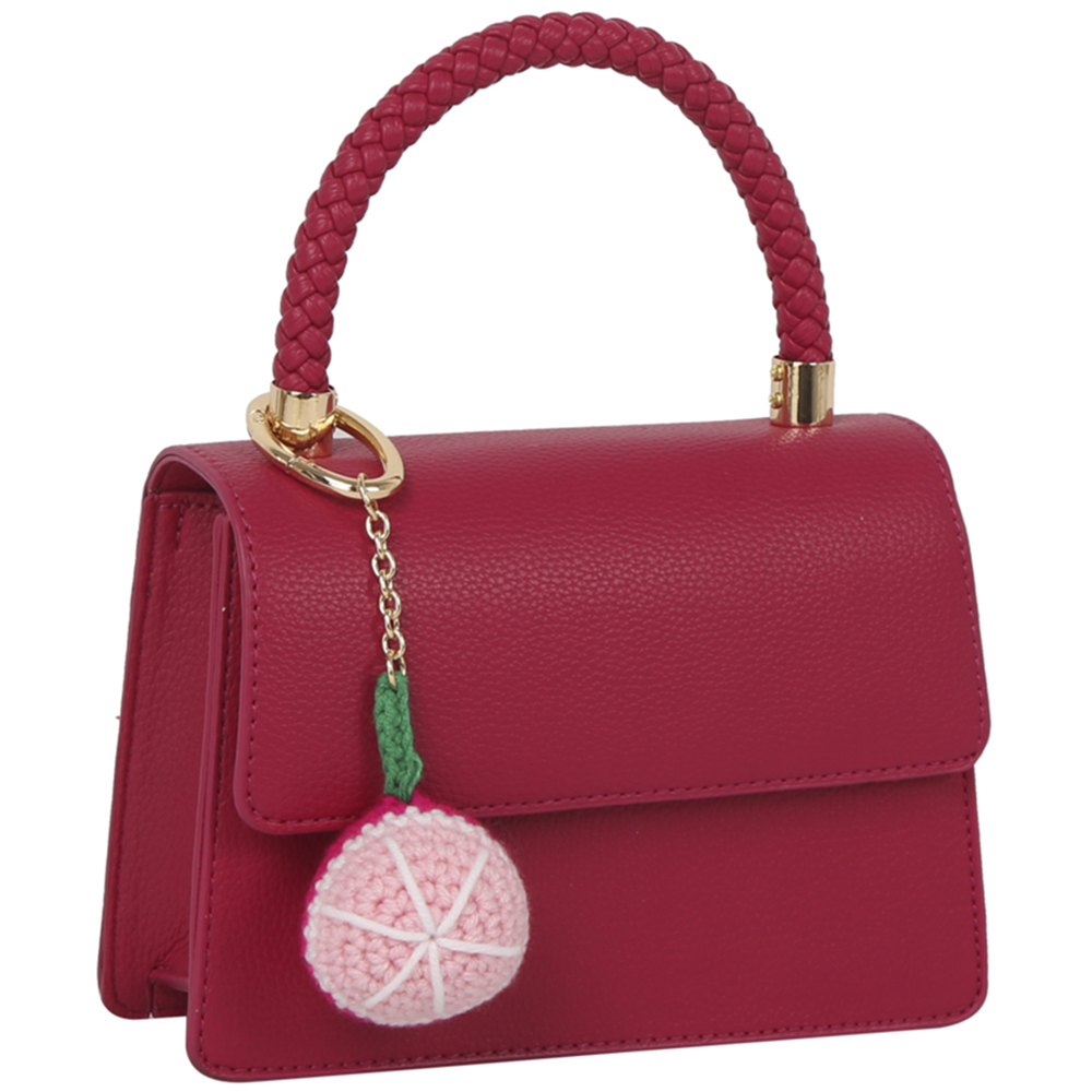 TEXTURED DESIGN HANDLE BAG W CHERRY KEYCHAIN