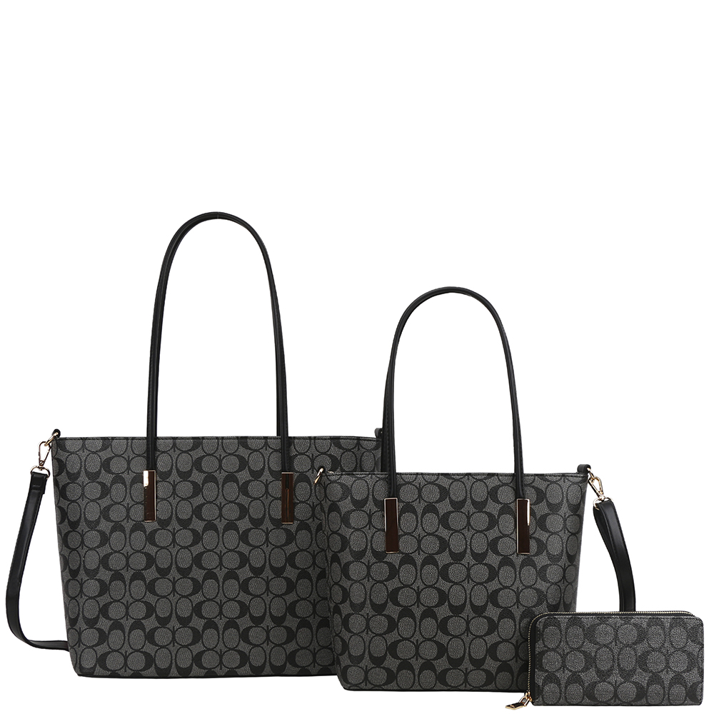 3IN1 OVAL PRINT TOTE W MATCHING BAG AND WALLET SET