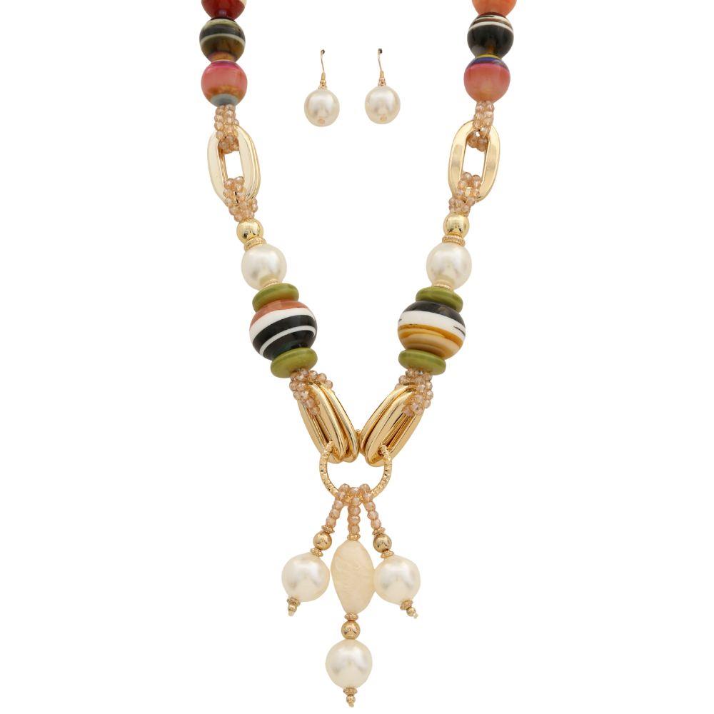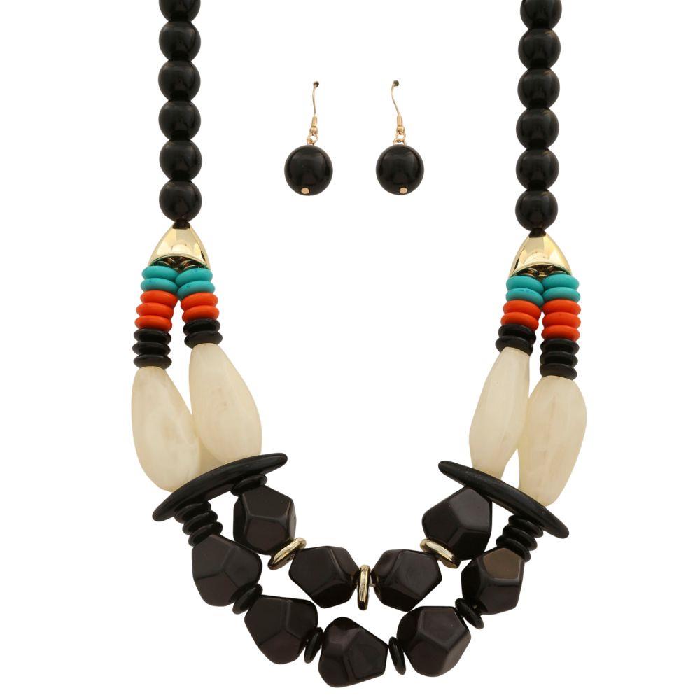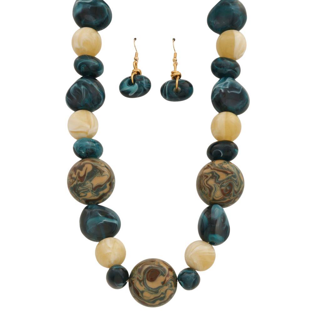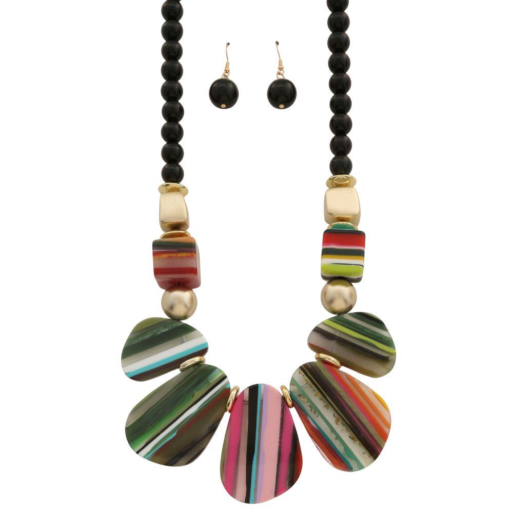 OVAL ANIMAL PRINT PATTERN BEADED NECKLACE