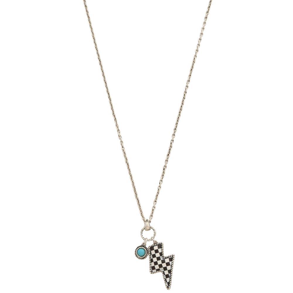 CHECKERED LIGHTNING BOLT TURQUOISE BEAD NECKLACE