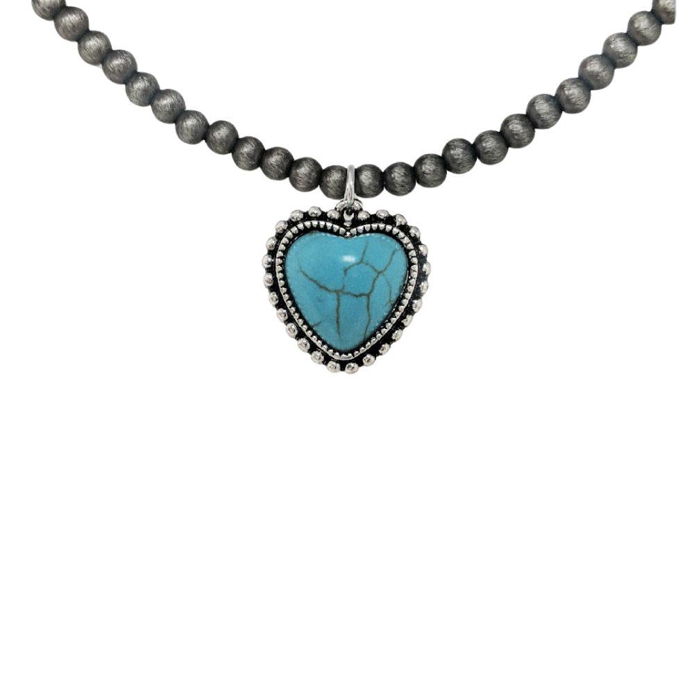 WESTERN HEART CHARM TURQUOISE BEADED NECKLACE