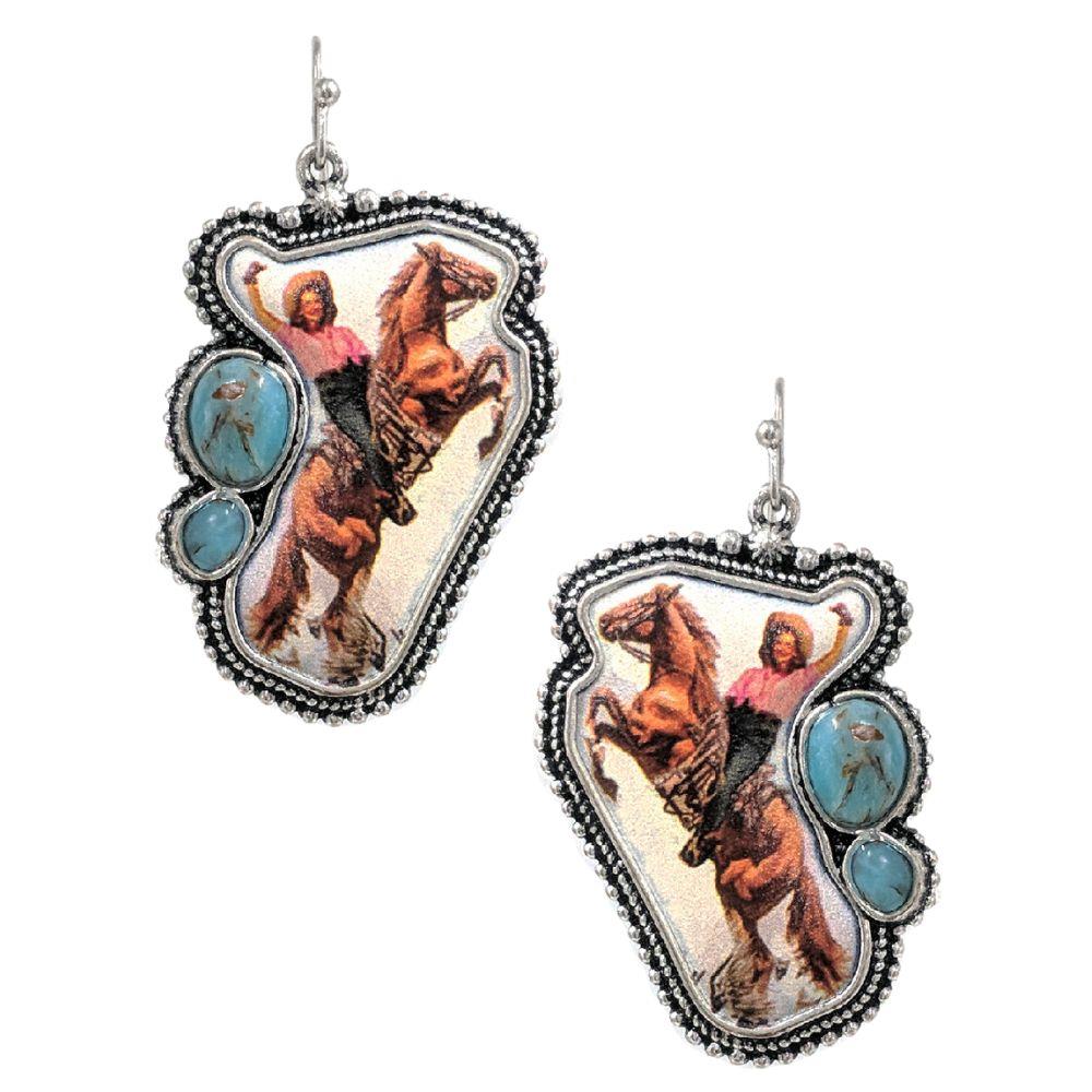WESTERN PRINT SEMI AB STONE DANGLE EARRING