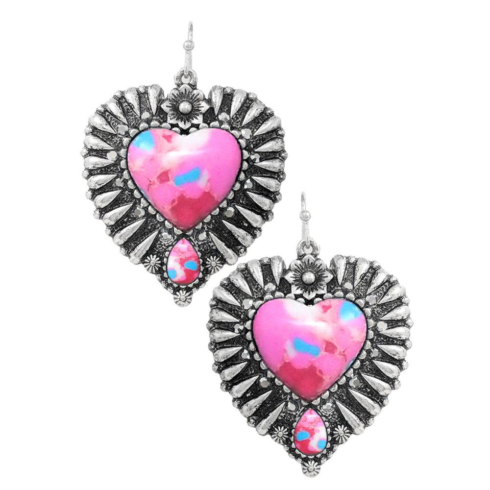 WESTERN BALL TEXTURE HEART SHAPE DANGLE EARRING