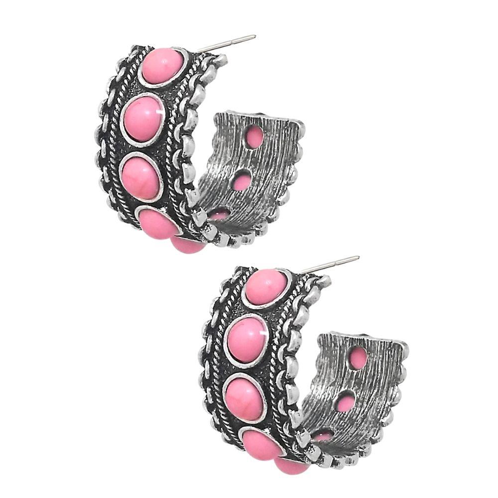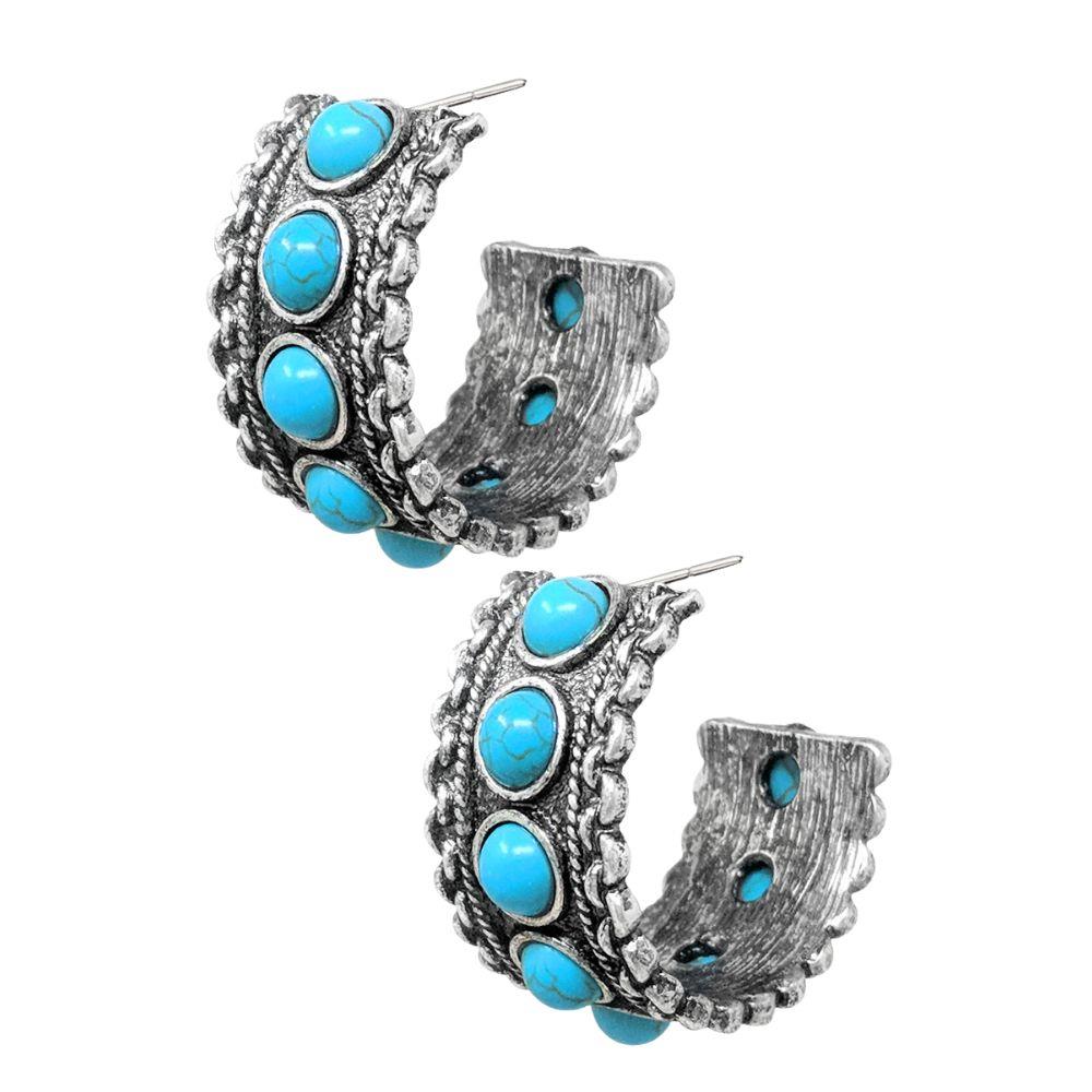 WESTERN TURQUOISE STONE OPEN HOOP EARRING