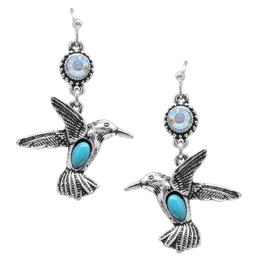 WESTERN TURQUOISE BEAD HUMMINGBIRD DANGLE EARRING