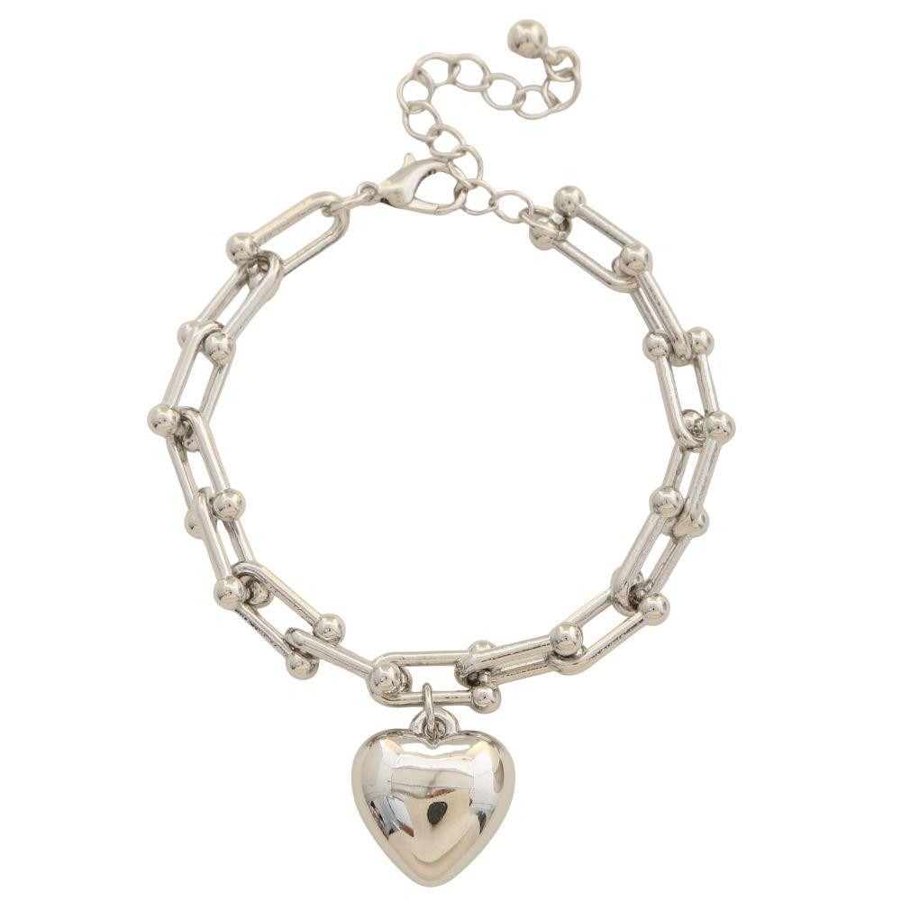 PUFFY HEART CHARM U LINK METAL BRACELET