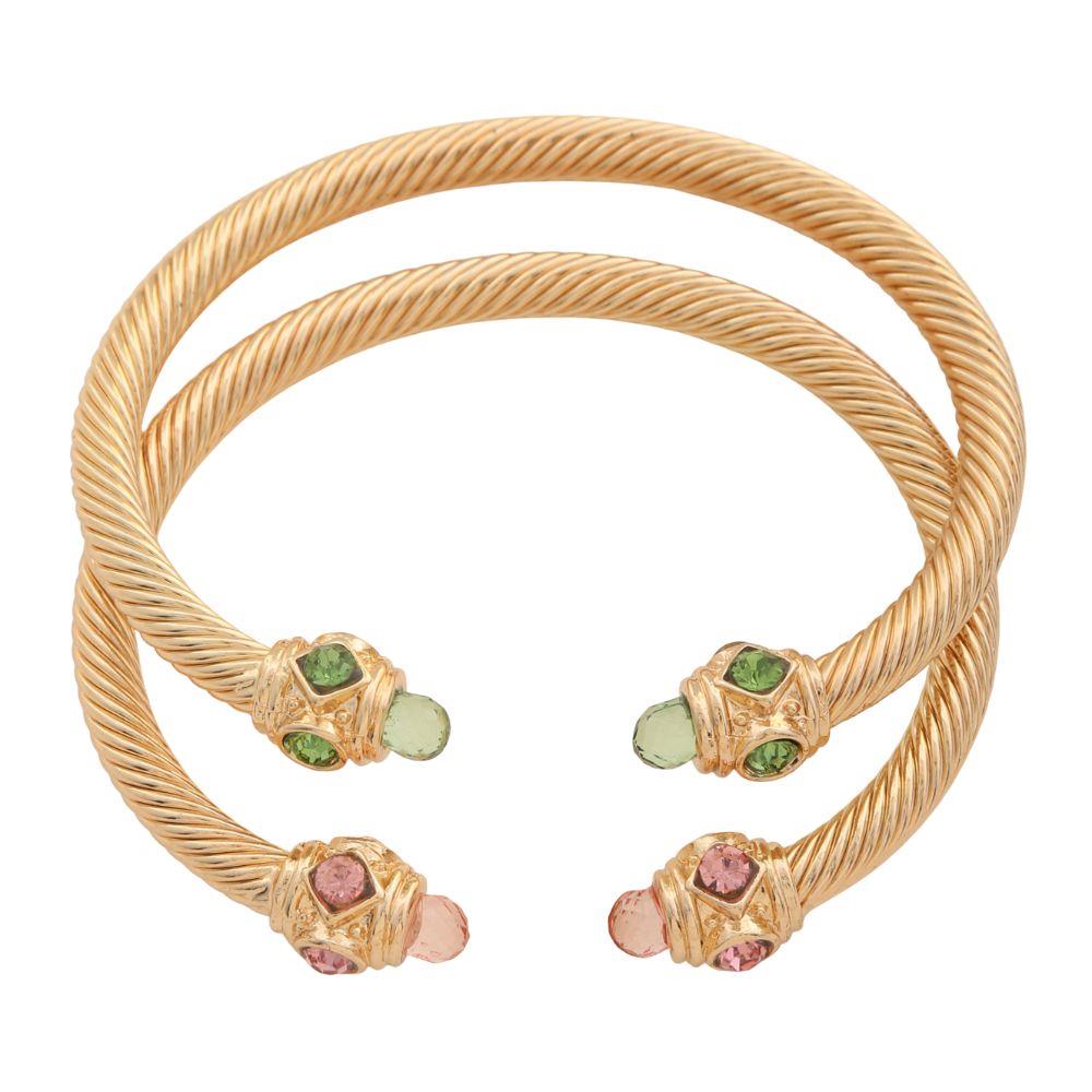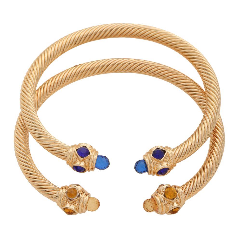 STONE BEAD LINED LINK METAL CUFF BRACELET SET