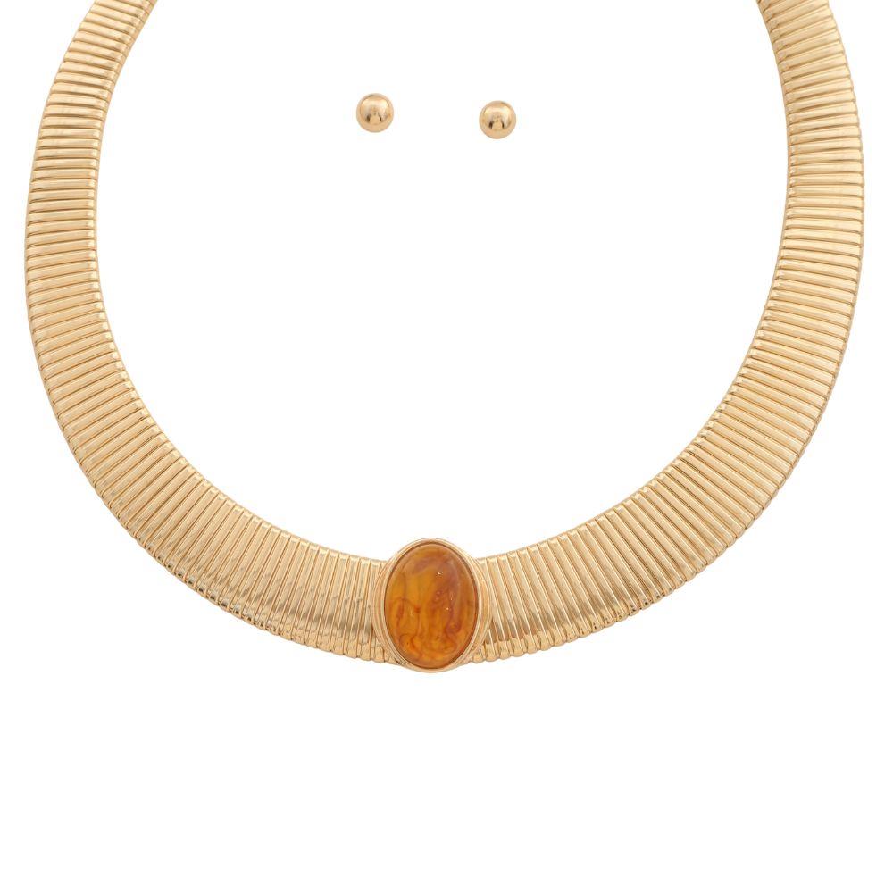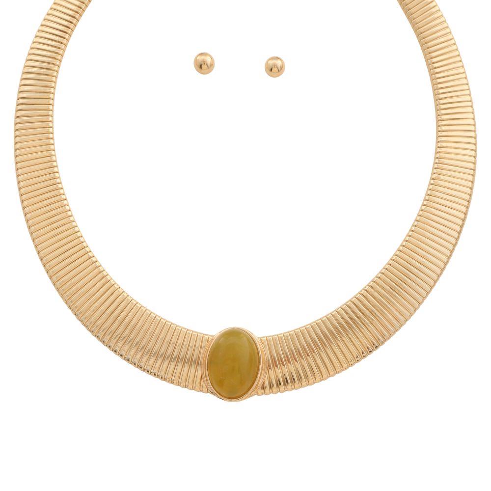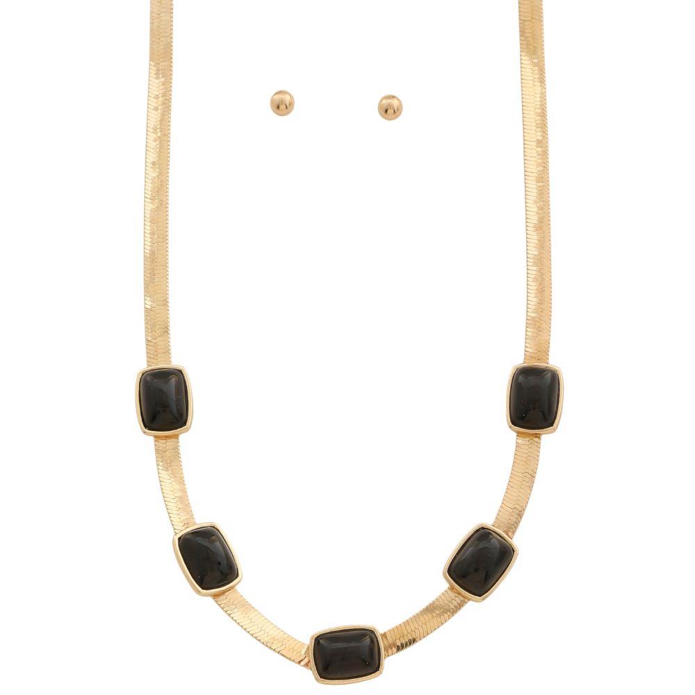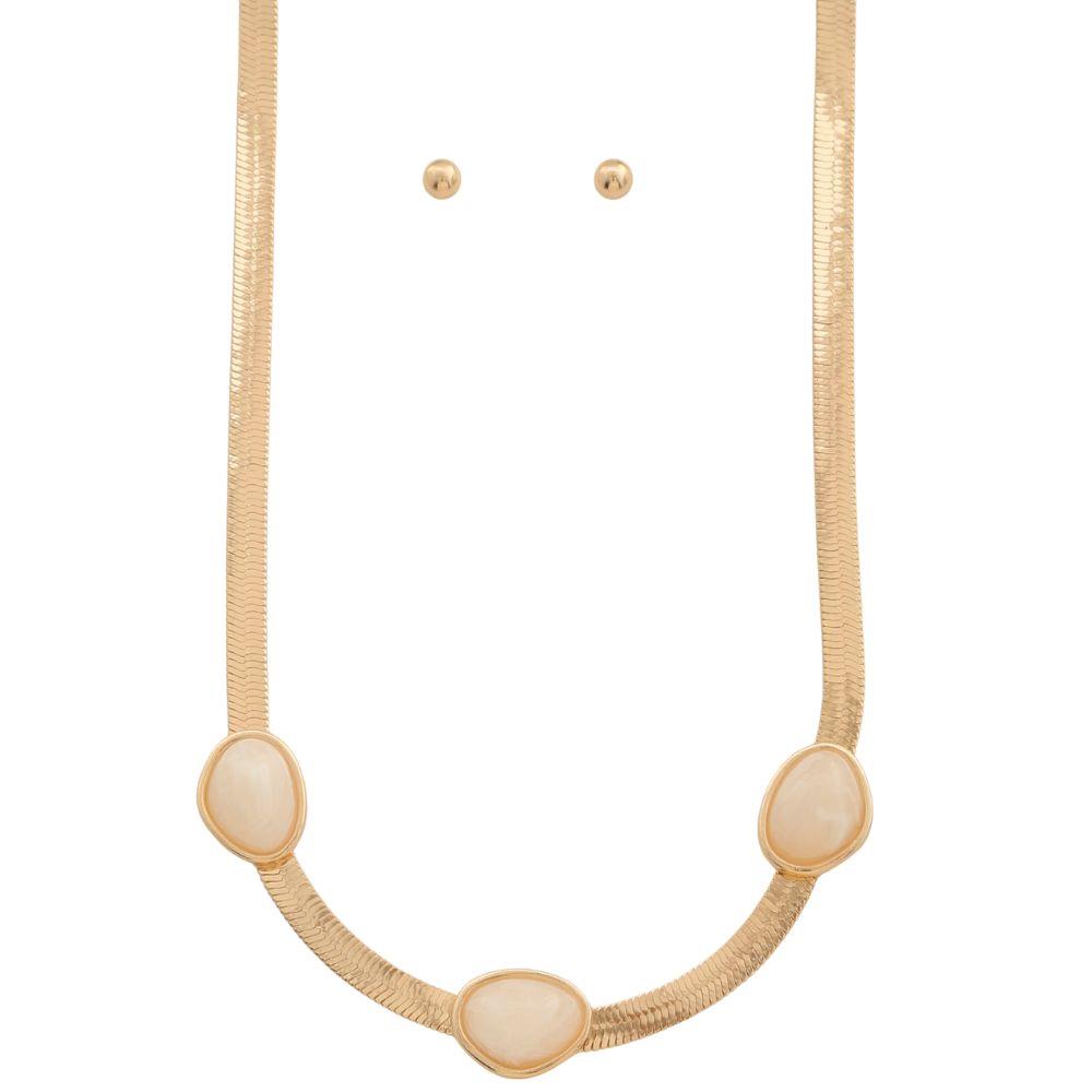 OVAL STONE FLAT CHAIN METAL NECKLACE