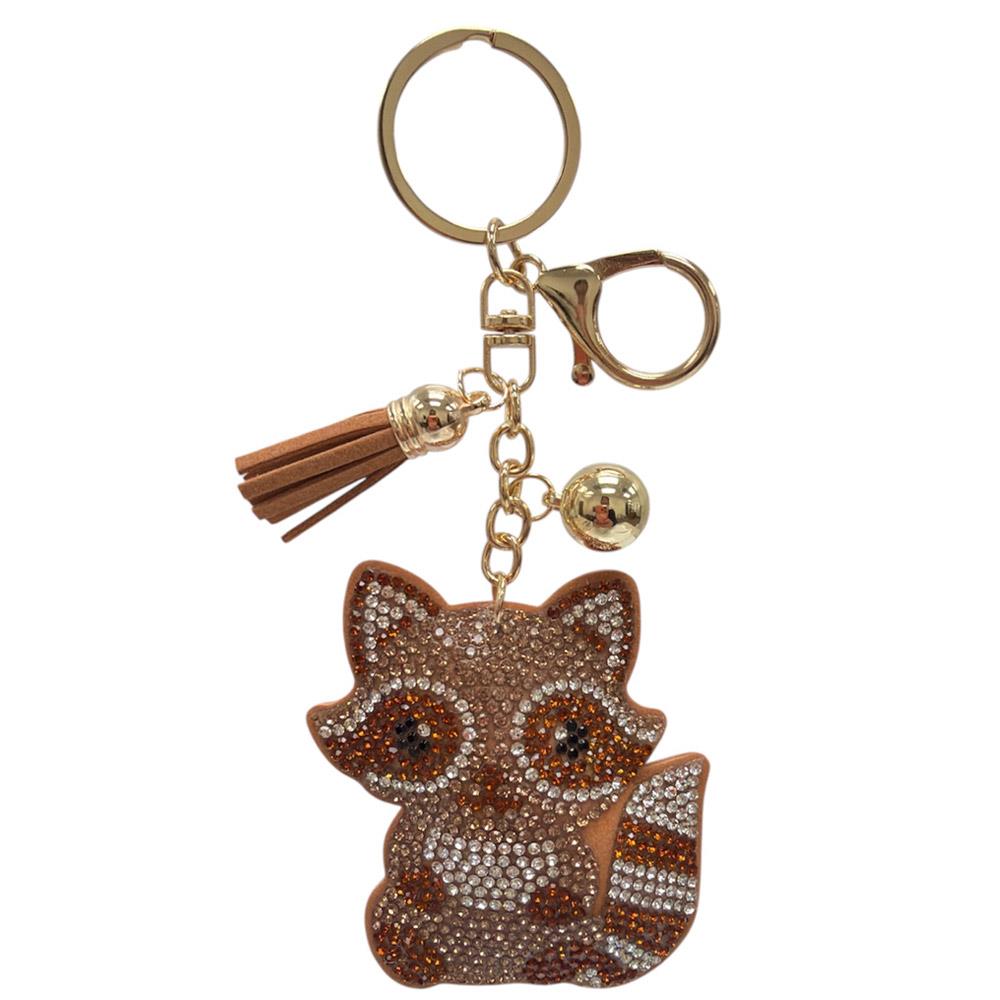 RHINESTONE RACCOON KEYCHAIN WITH TASSEL