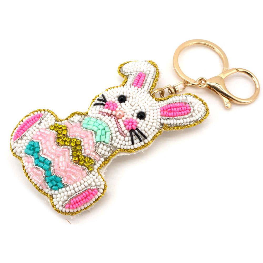 BEADED EASTER BUNNY EGG CHARM BAG CHARM KEYCHAIN