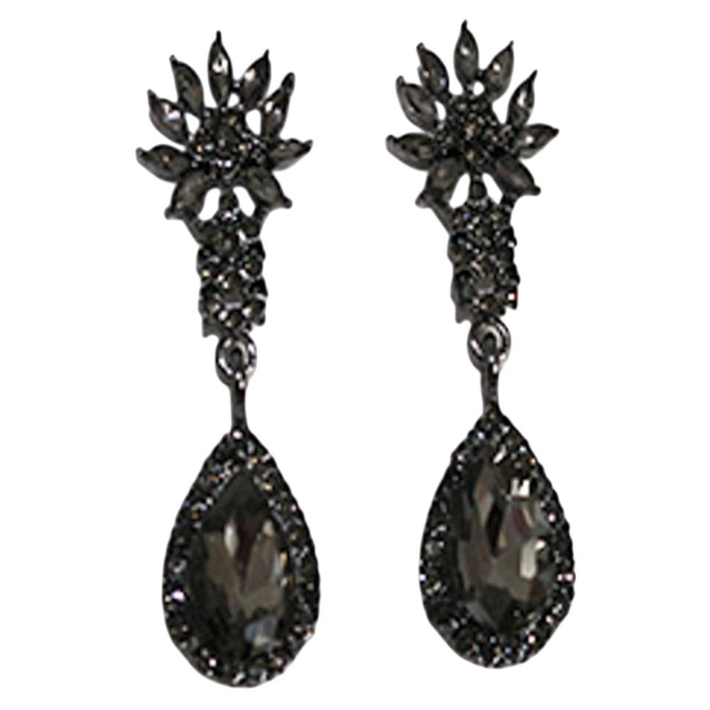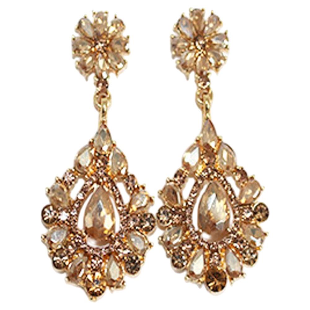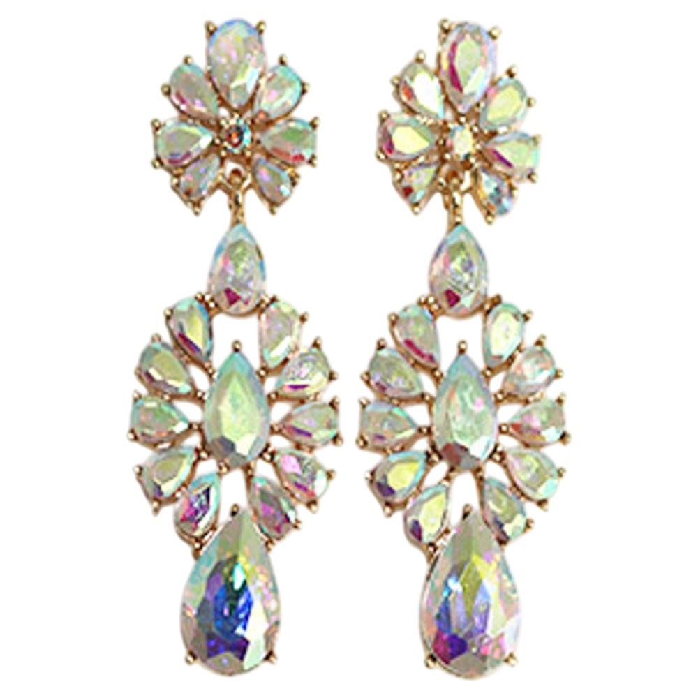 CRYSTAL STONE FLORAL TEARDROP DROP EARRING