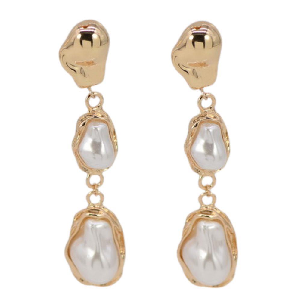 PEARL BEAD METAL BEAD DANGLE EARRING