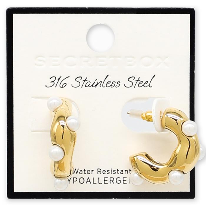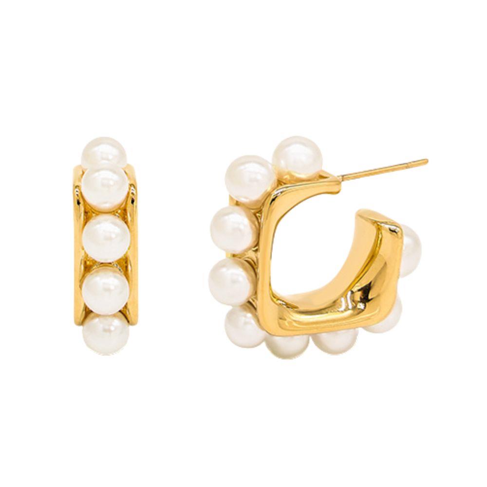 18K BRASS SQUARE PEARL HUGGIE DANGLE EARRING