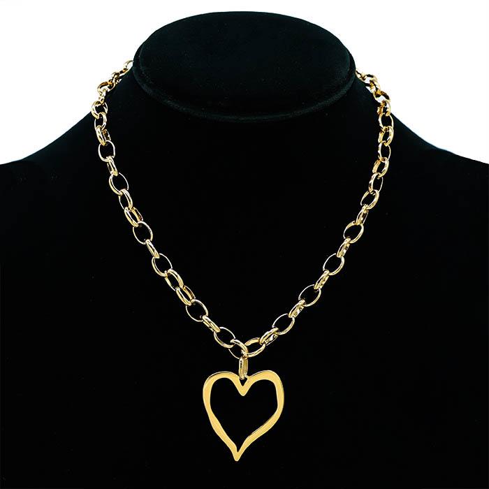 18K BRASS RHINESTONE HEART PENDANT NECKLACE