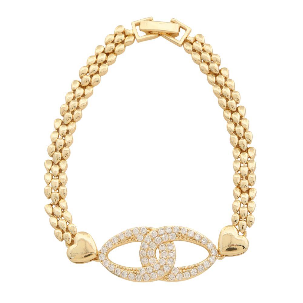 PAVE RHINESTONE OVAL DOUBLE HEART METAL BRACELET