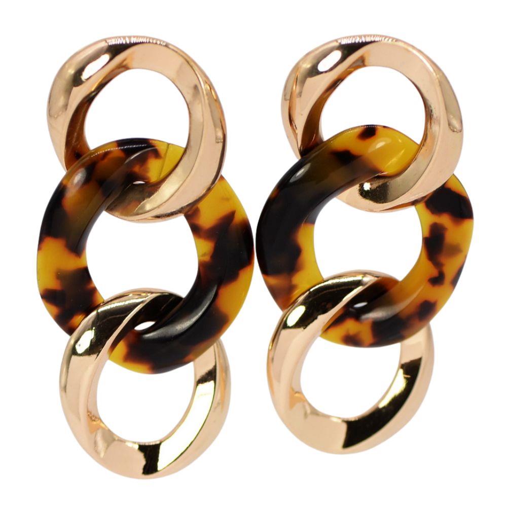 TWO TONE LONG OVAL LINK DANGLE EARRING