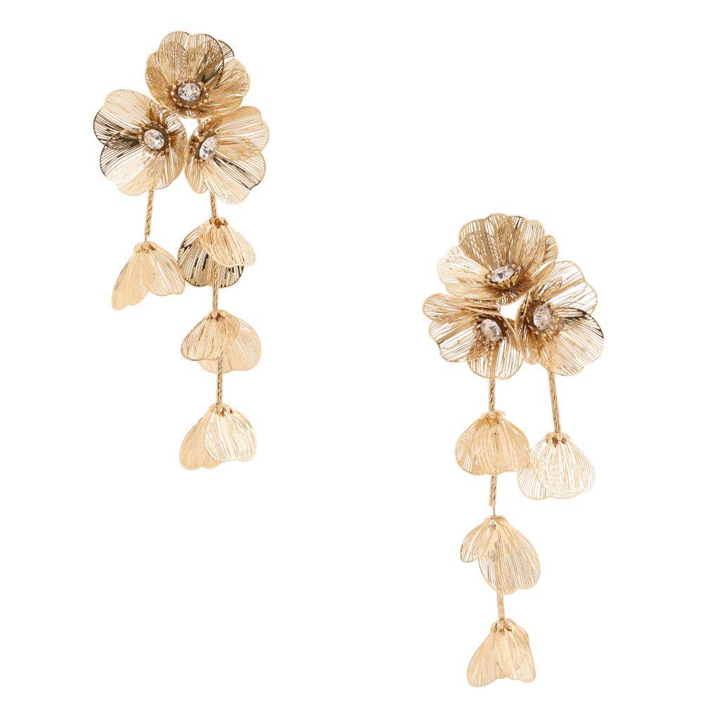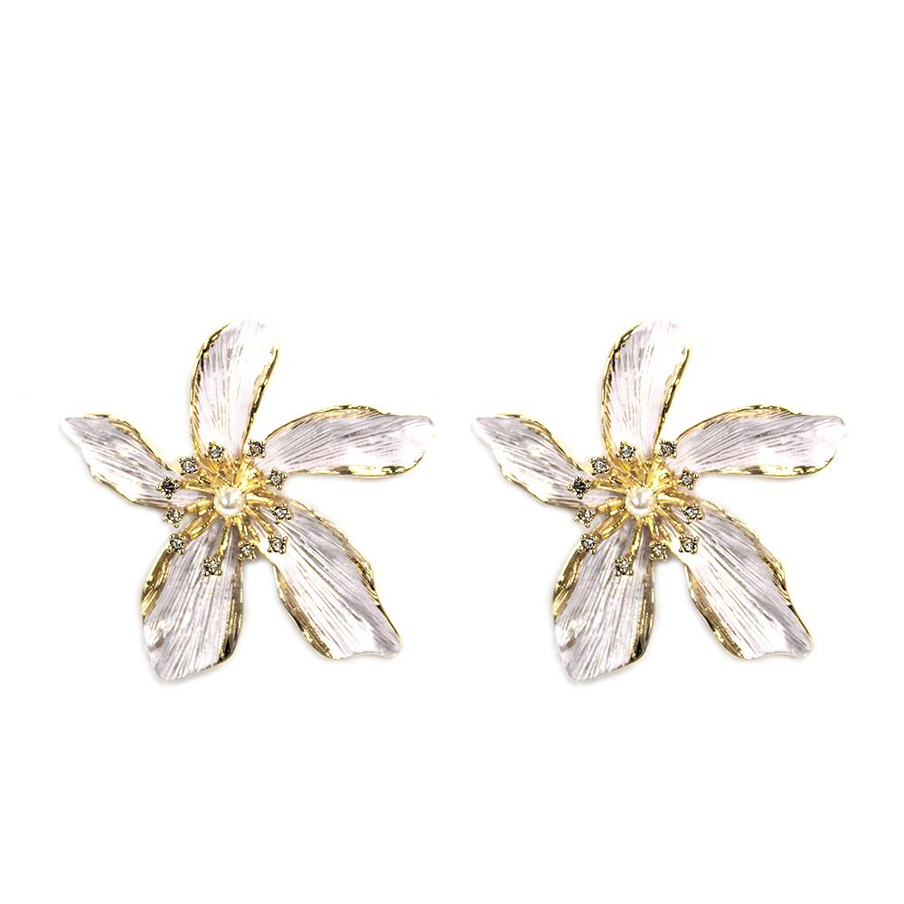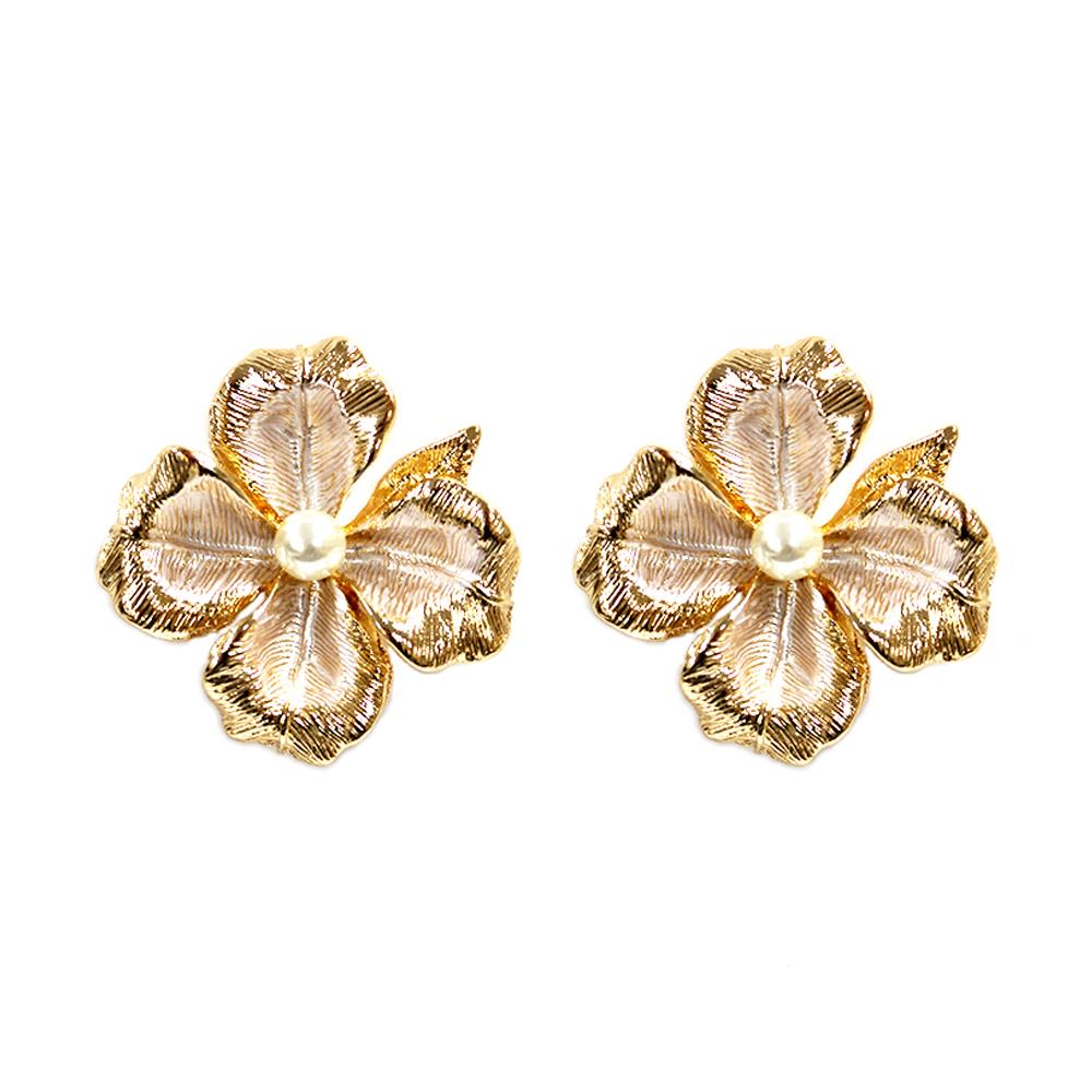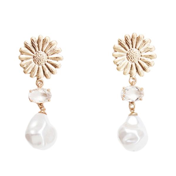 METAL FLORAL PEARL DROP DANGLE EARRING