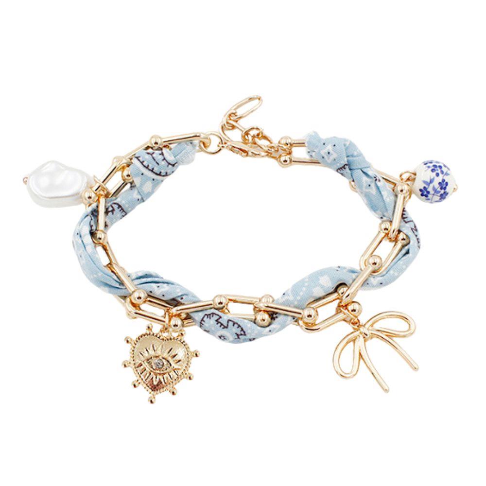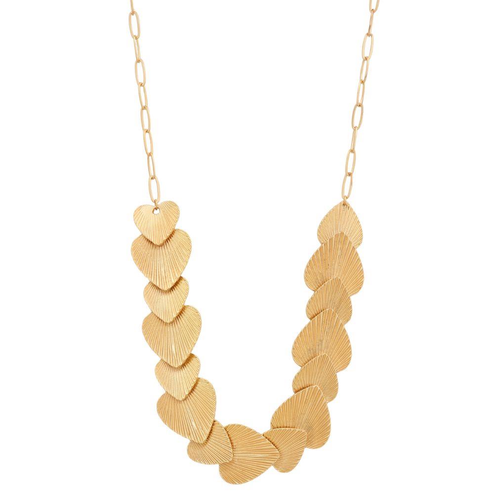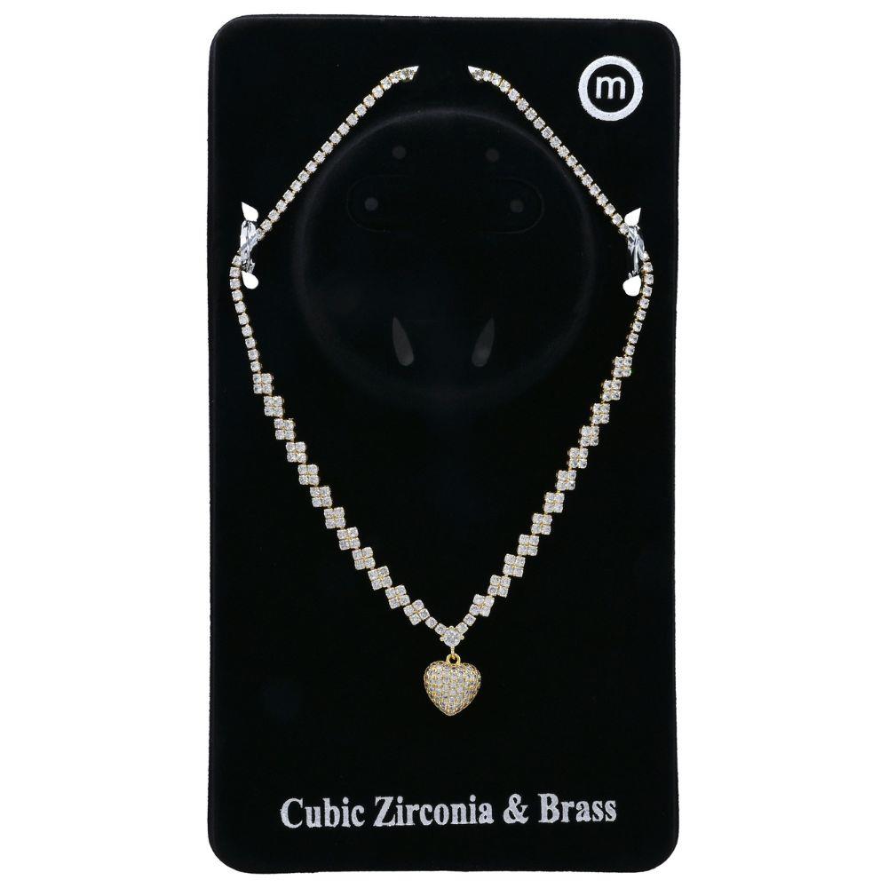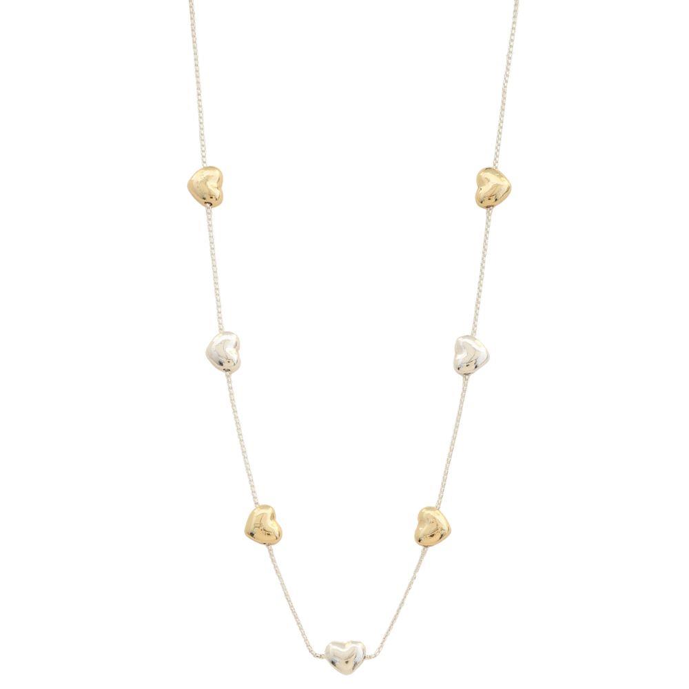 SODAJO CUT OUT HEART CHARM CRYSTAL PEARL BEAD GOLD DIPPED NECKLACE