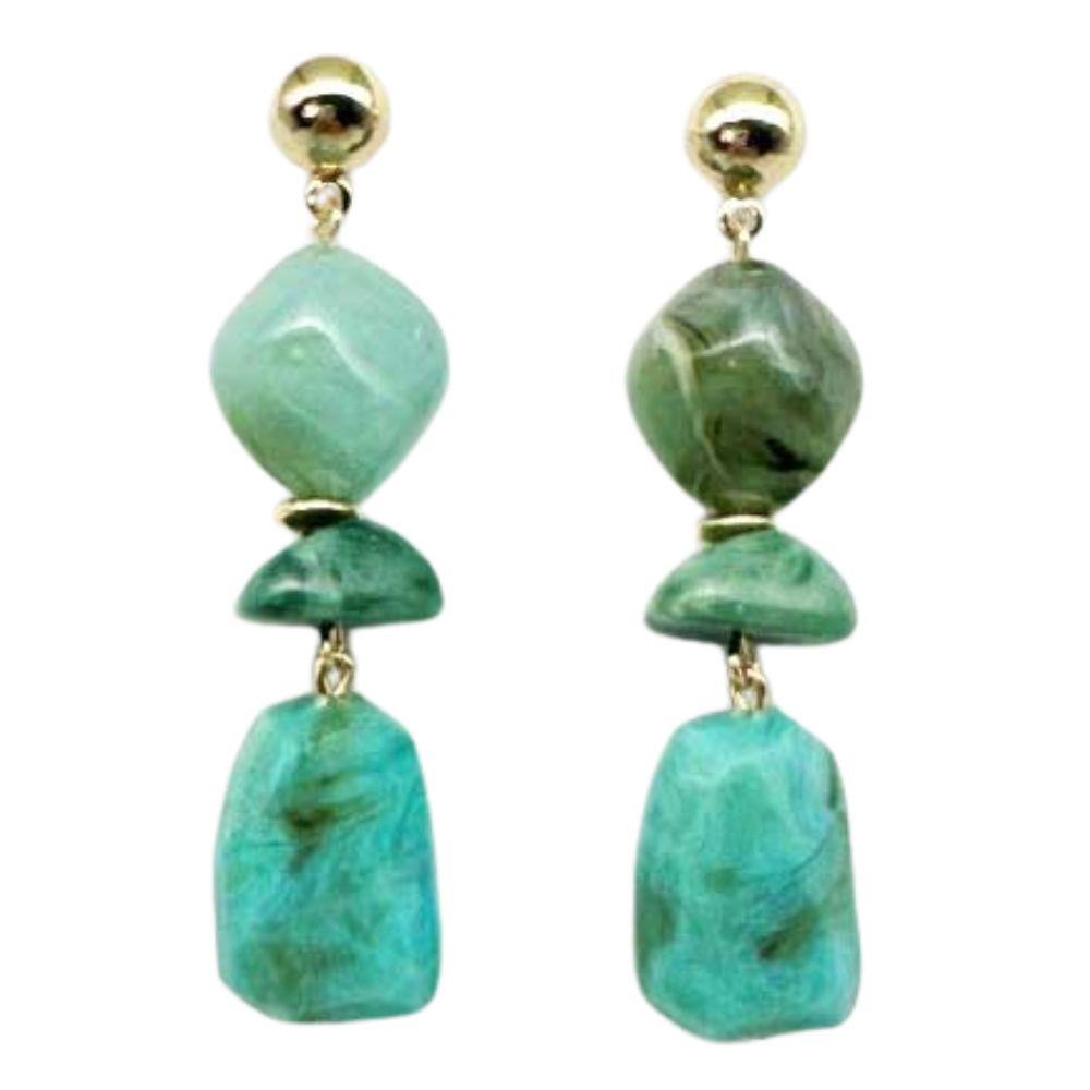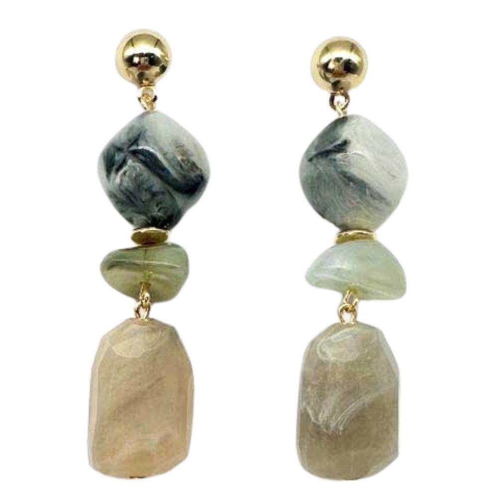 RESIN STONE SQUARE TEARDROP DANGLE EARRING